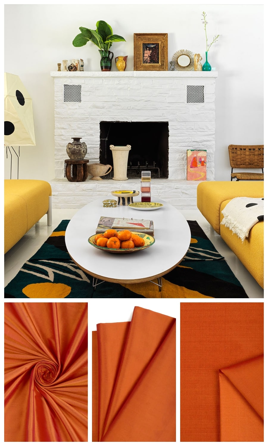 Angel with a hint of devil. Gentle with a touch of fire. Mandarino is all this and more. This gorgeous pure silk fabric is a bold orange – perfect for a queenly interior where beauty and elegance reign supreme.