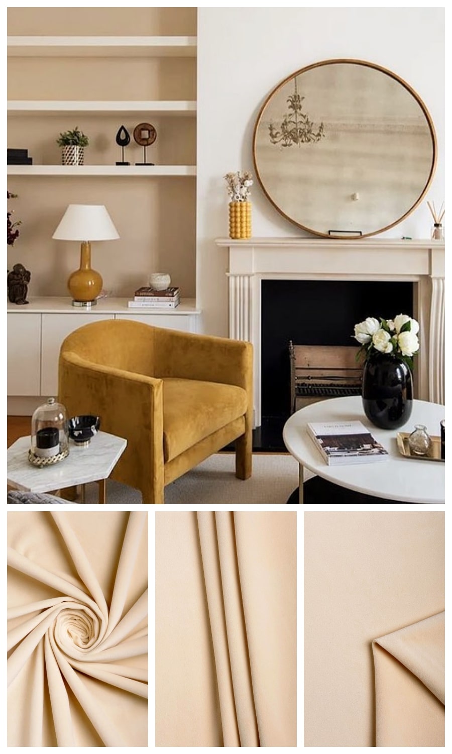 Just as linen rules casual spaces, velvet reigns supreme in formal decors and spaces. From dimly lit cozy dining rooms to elegant reception rooms, this plush beige number is the perfect backdrop for traditional/classic decor.