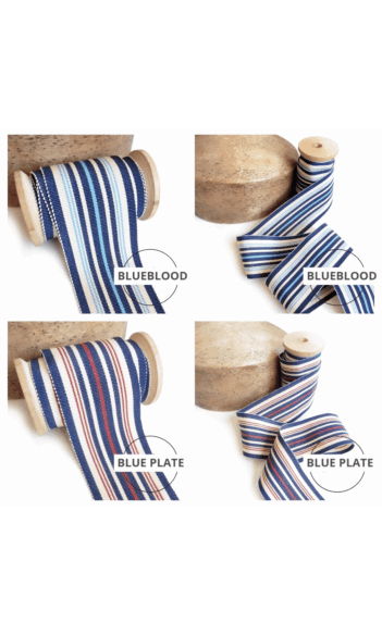 Plain textured grosgrain ribbons bring a tasteful addition with a sophisticated flair. Velvet ribbons are also solid colored and their soft lush finish helps to confer a high-end look as well as a textural variety. For more ornate patterns, choose one of our geometric trims featuring greek keys and trellis motifs. Or if you like more simplistic patterns, choose one of our striped ribbons.