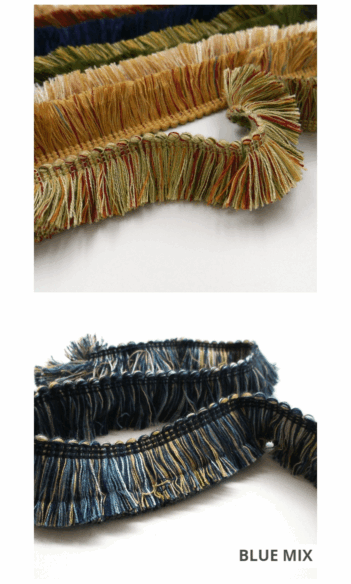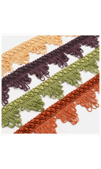 Fringe trims should interest those who don’t want the trims to be too minimalistic like ribbons nor too loosely connected like pompoms or too traditional like tassels. Cotton fringes hold a country-style appeal while viscose ones can proffer a regal flair.