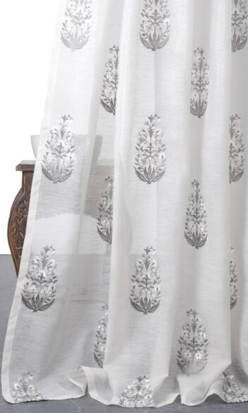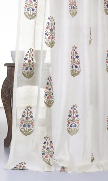 ‘Leh Nalini’ Floral Embroidered Linen Window Drapery (White/ Ivory)