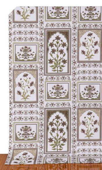 ‘Abhaneri’ Floral Bespoke Curtains (White/ Navy Blue/ Green)