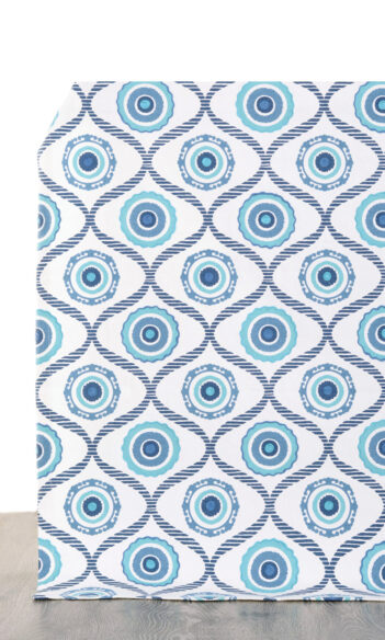 ‘Kiwi’ Geometric Print Custom Drapes (Aqua Blue/ White)