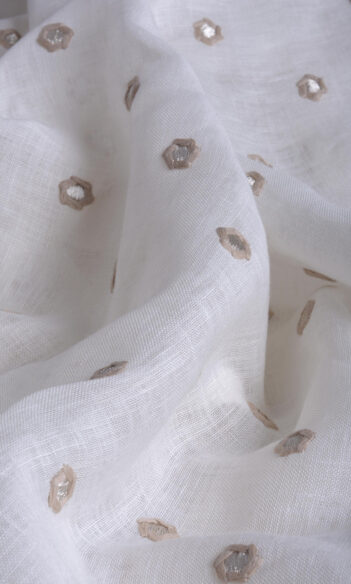 ‘Zen Essence’ Geometric Embroidered Bespoke Drapes (Beige/ White)