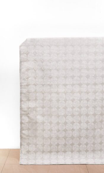 Tone down the playfulness: Colored circles designed sparsely on a neutral theme define a highly energetic vibe. Make a continuous flow of the theme in a slightly blurred fashion as in our Cloudless fabric or through imperfect circles as in Giulia, and you will have a more serious rendition of an otherwise overly-exuberant theme. Or opt for the ones that look like sprinkles of paint as in Chesterfield making the room look like an artist’s studio.