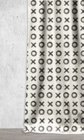 ‘Czarny’ Modern Geo Print Bespoke Drapes (Black/ Ivory)