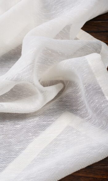 ‘Smokey Wings’ Textured Sheer Custom Size Drapes (Cotton White)