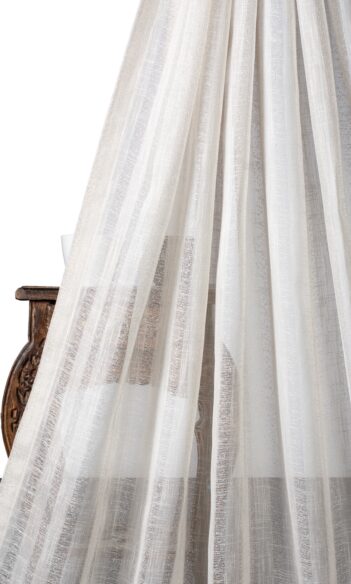 ‘Mirina’ Embroidered Striped Sheer Bespoke Drapes (Creamy Beige)