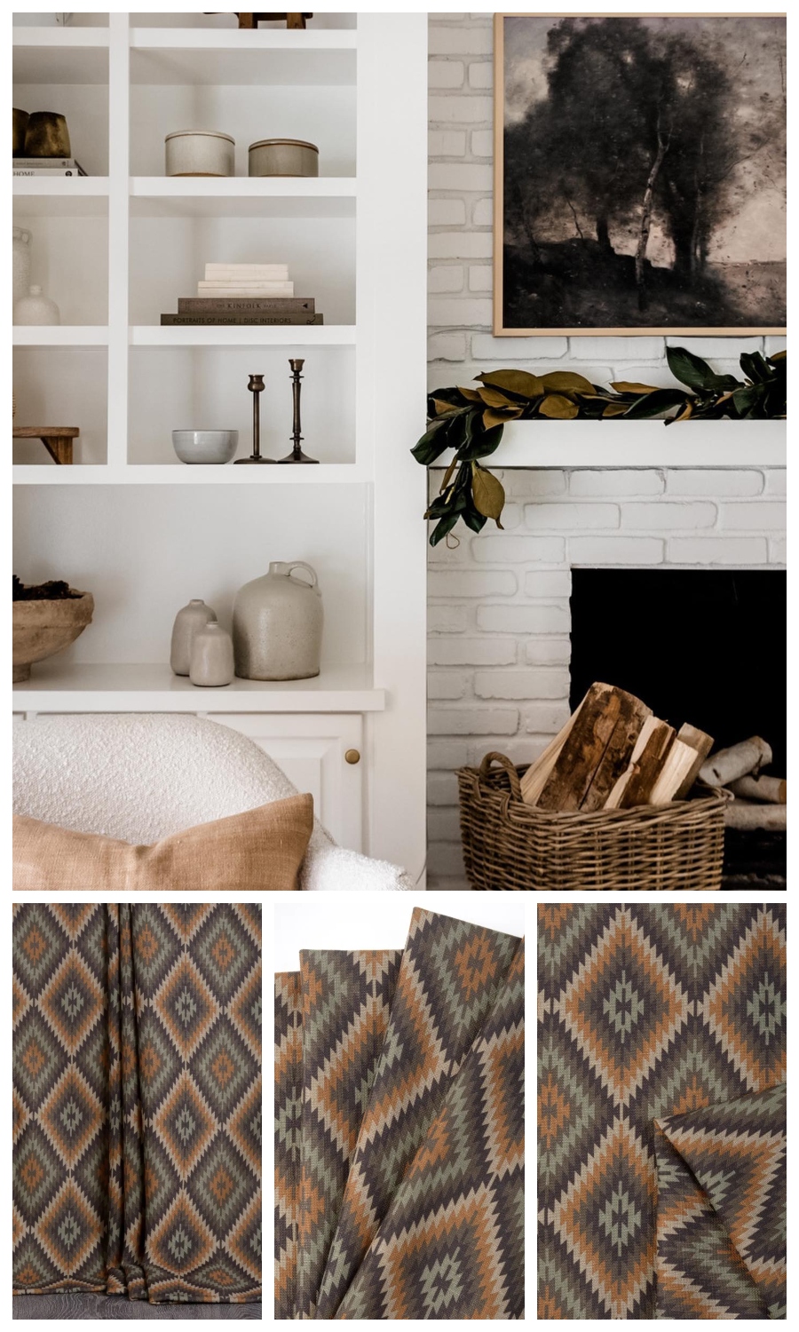 There is something timeless about its classic kilim motif that makes Abella the fabric you cannot look away from. Patterned in subdued hues of sage green, mustard and charcoal gray, Abella’s geometric charm and flatweave look work well for both blinds and curtains. We recommend it for interiors with vintage furniture and elegant ambience.