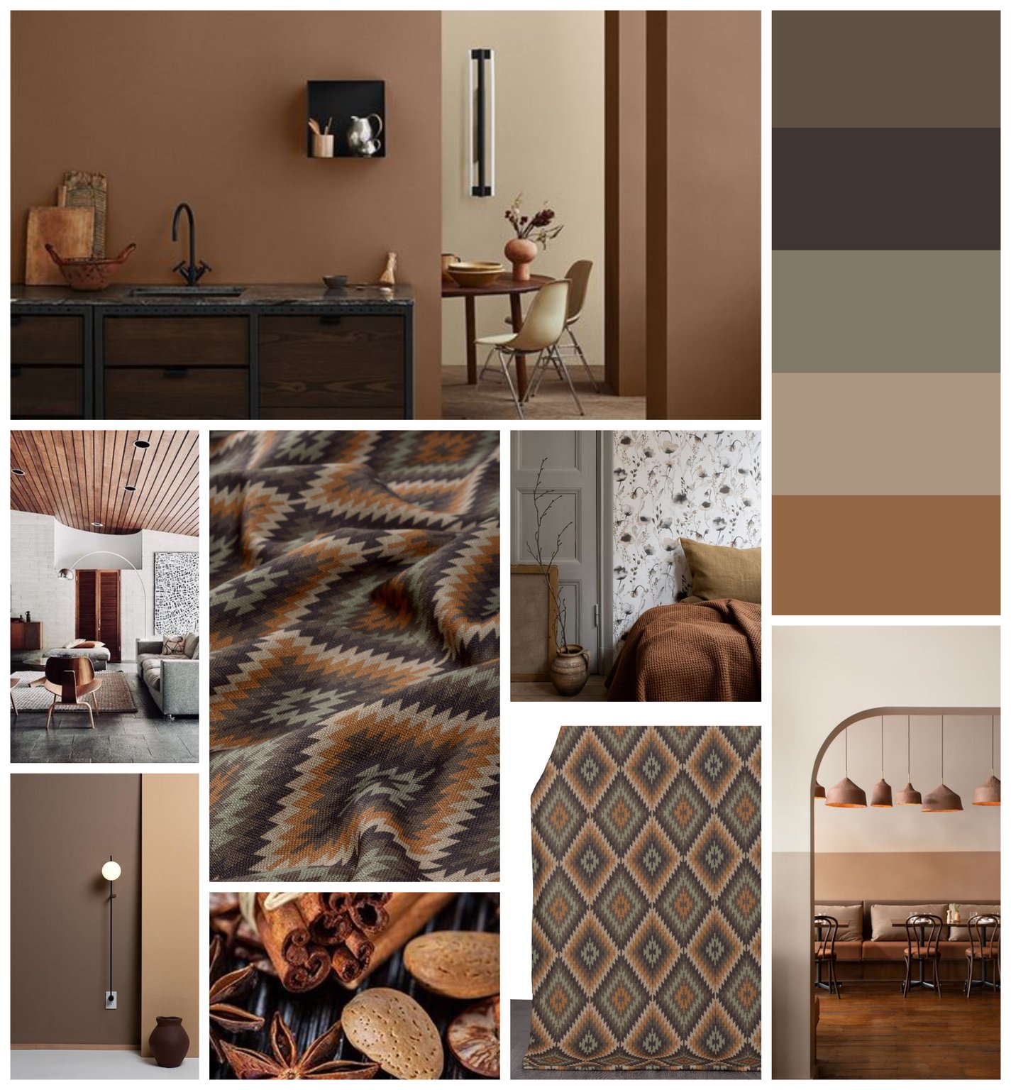 Patterned in muted hues of sage green, mustard and charcoal gray, Abella’s geometric charm and flatweave look work well for both blinds and curtains.