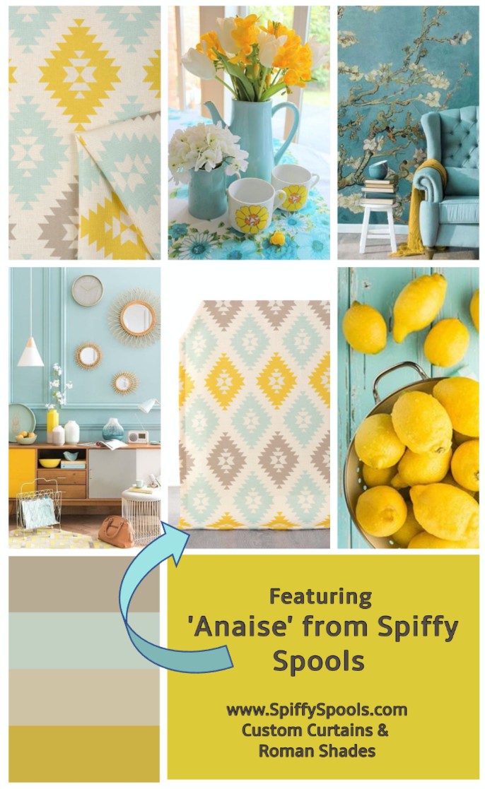 A quirky take on the highlandic argyll patterns. The classic clannish crisscross of diamonds has been given a new angle (literally!) in Anaise. Featuring a pastel palette of daisy yellow, sky blue and smoky gray on milky white base, This fabric is good for family rooms, kids’ rooms and casual space draperies.