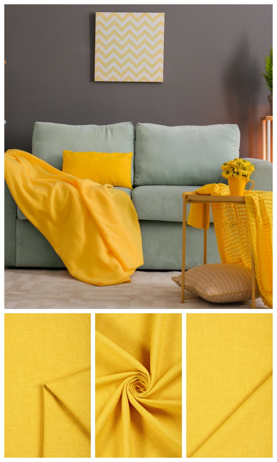 One of our finest linen-cotton blends. Part of our Somera collection, this deep yellow linen has all the cool of a fine linen with the easy wearability of cotton. Mix and match it with one of the other tone linens in a color block style. Or use it as is. This classic medium weight fabric has a beautiful hand and drape which is sure to dress up any window in your home beautifully.