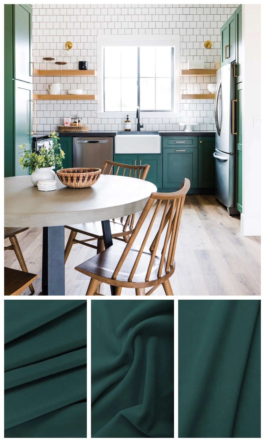 Just as linen rules casual spaces, velvet reigns supreme in formal decors and spaces. From dimly lit cozy dining rooms to elegant reception rooms, this plush green-blue number is the perfect backdrop for traditional/classic decor.