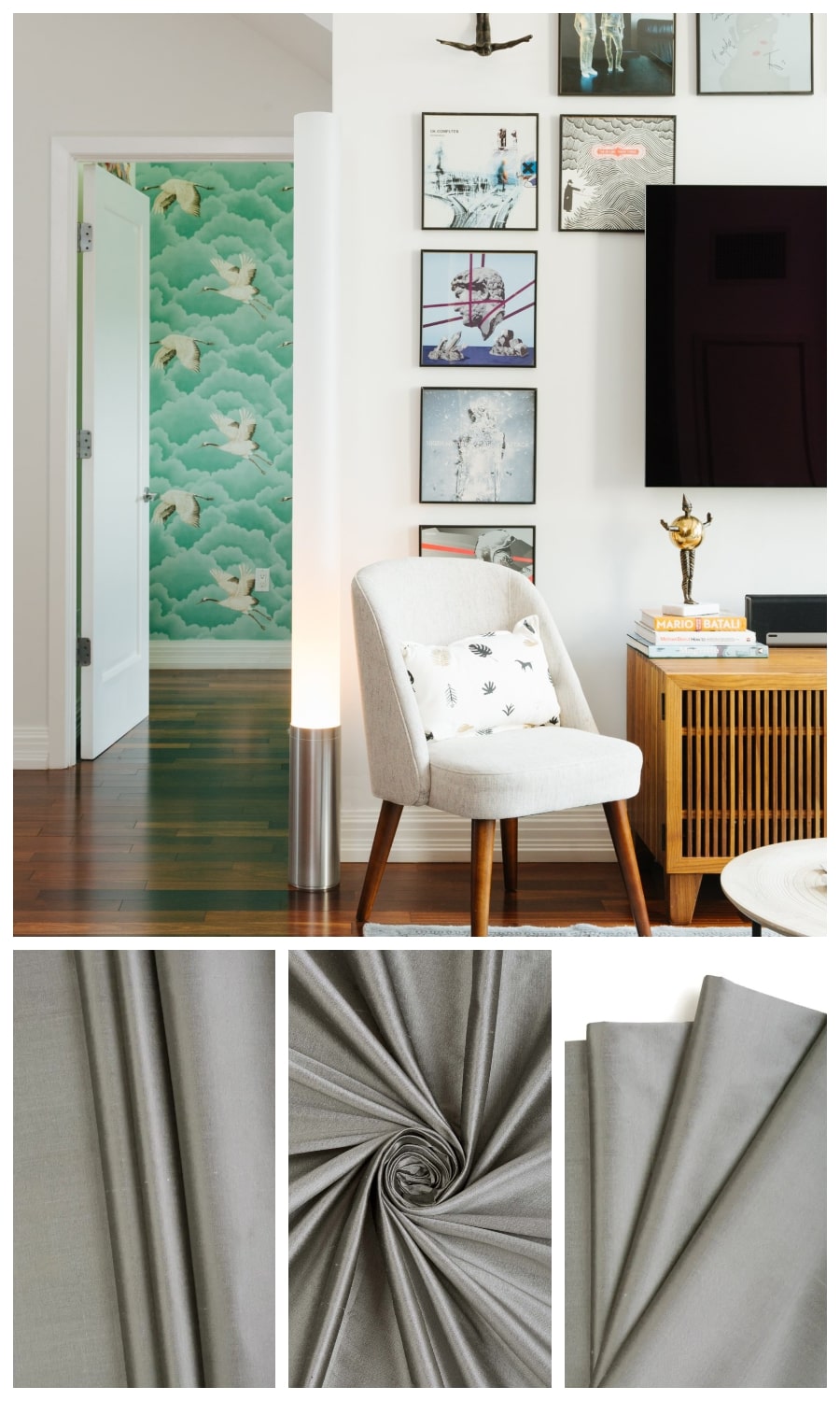 If steel were to take a silken avatar, it would surely be named Sombra. This pure silk drapery fabric has a silvery sheen reminiscent of regal ambience. It gives impeccable drape and looks fit for a palace. Its sombre color is the perfect backdrop for an elegant room where good taste reigns supreme.