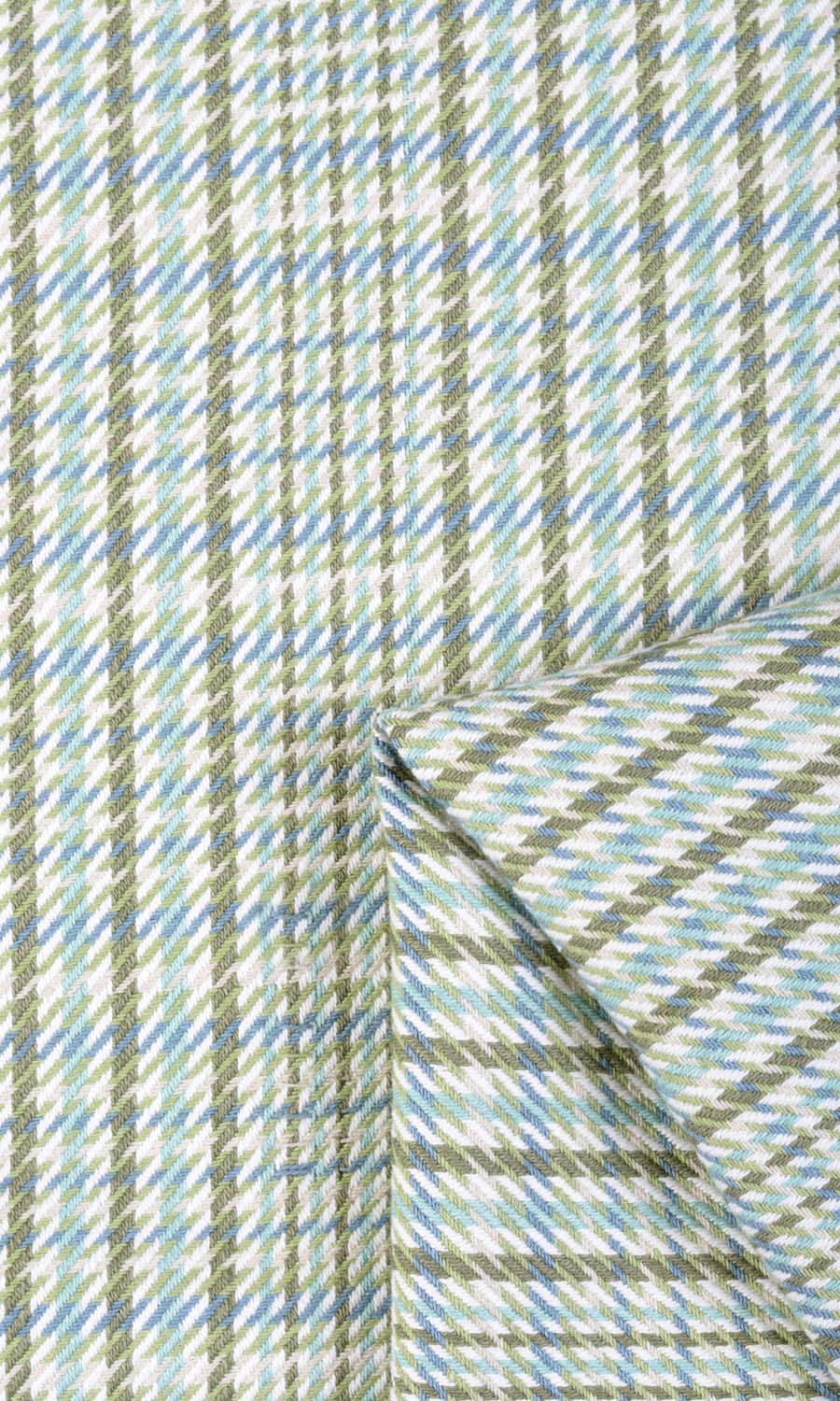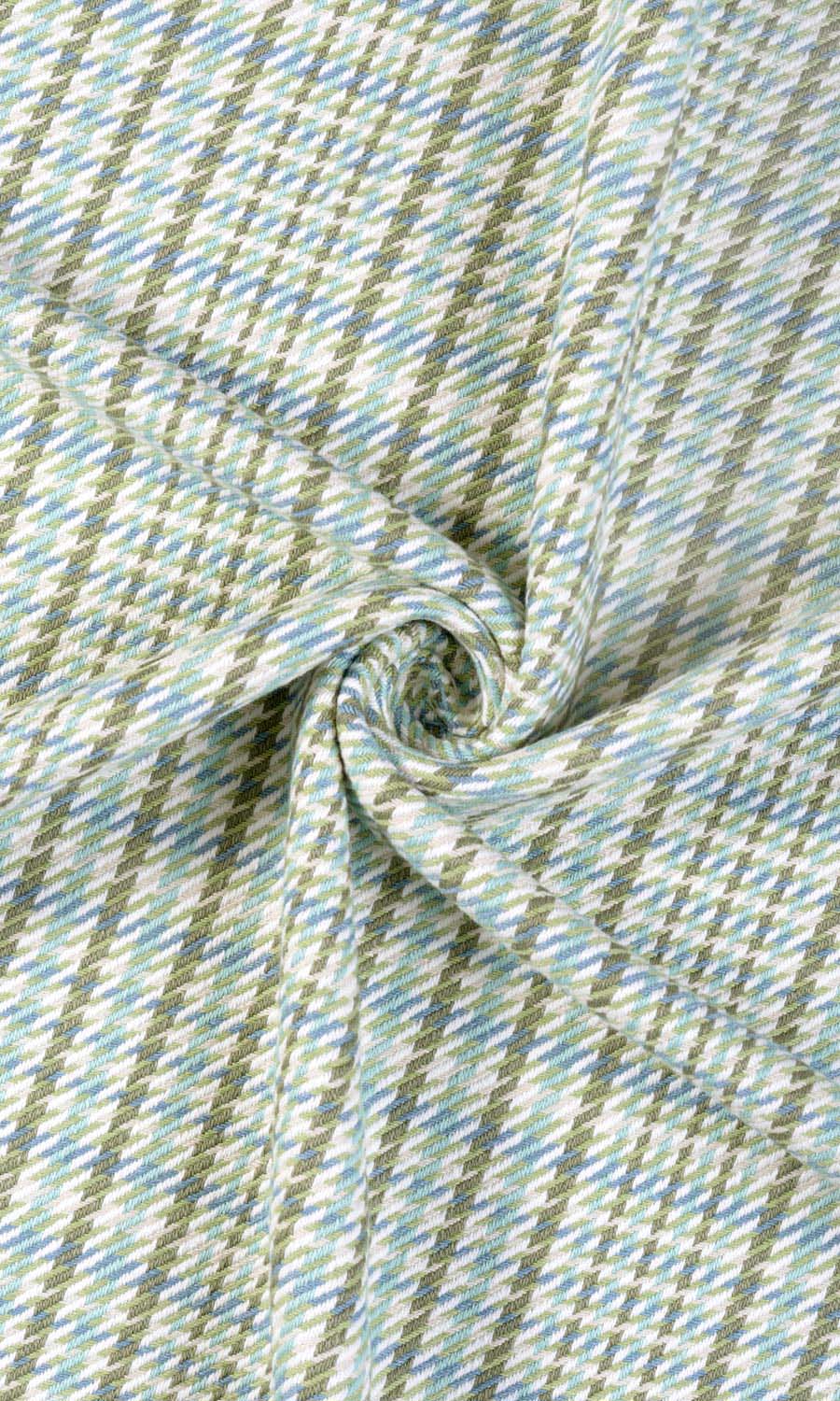 Undecided whether to choose a traditional look or switch to a modern style? Settle on Abacate that has a classic design with new age style. This pure cotton fabric has a woven houndstooth pattern in sage green, sky blue and pale aqua on a cloud white base. In a visually appealing twist to the motif, the stripes go thin and thick in width to create alternating variations. The sophisticated wilderness inspired color palette looks restful to eyes.