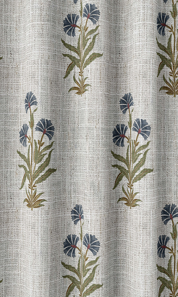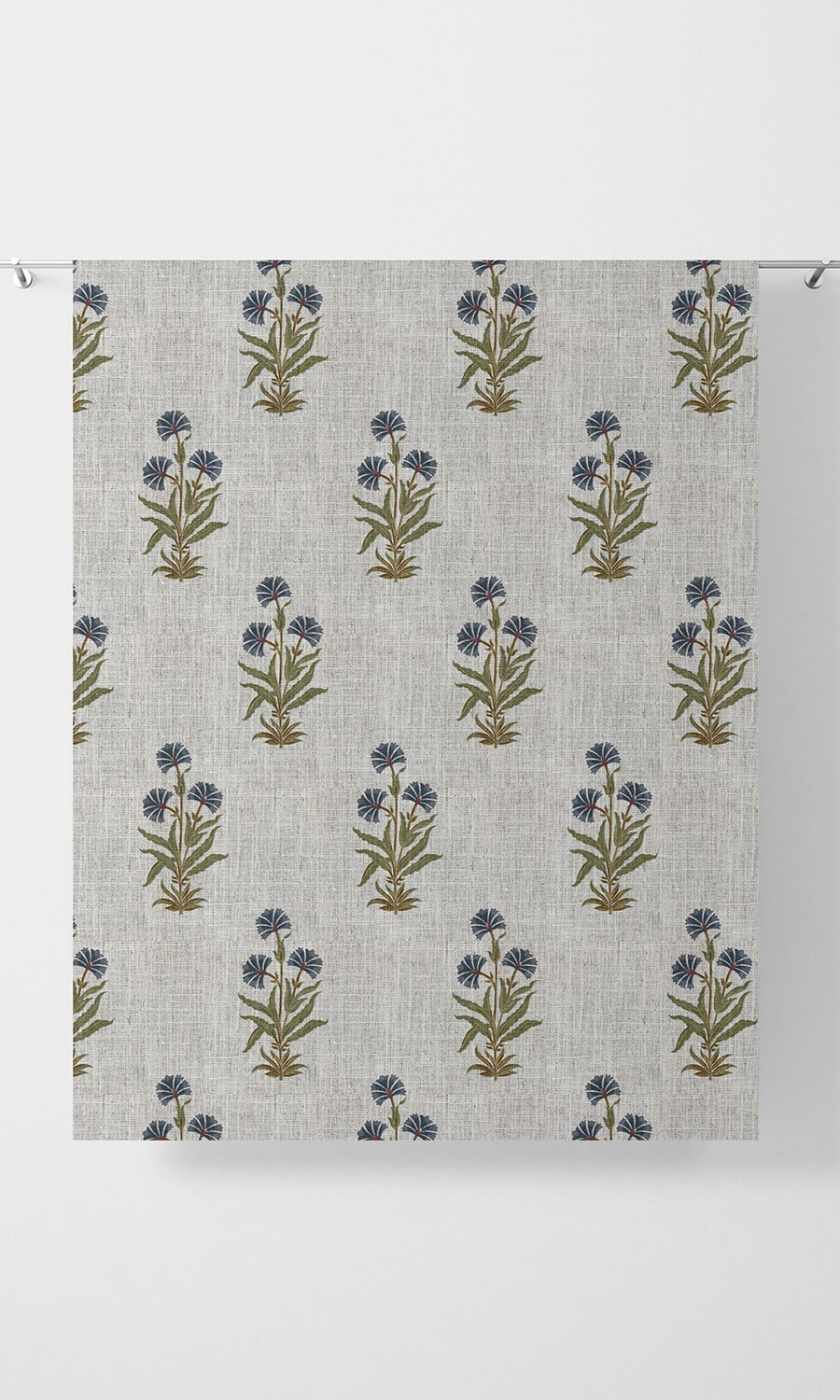 For the love of classic motifs and the sophistication of contemporary design trends, this fabric offers a delightful blend of both. A pale grey background featuring navy blue narcissus flowers with green foliage offers a visual treat without going overboard. So welcome home an ancient Mughal floral motif in this modern pared-back color palette. Welcome home our lovely Abhaneri!