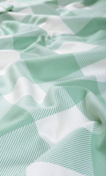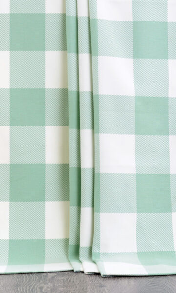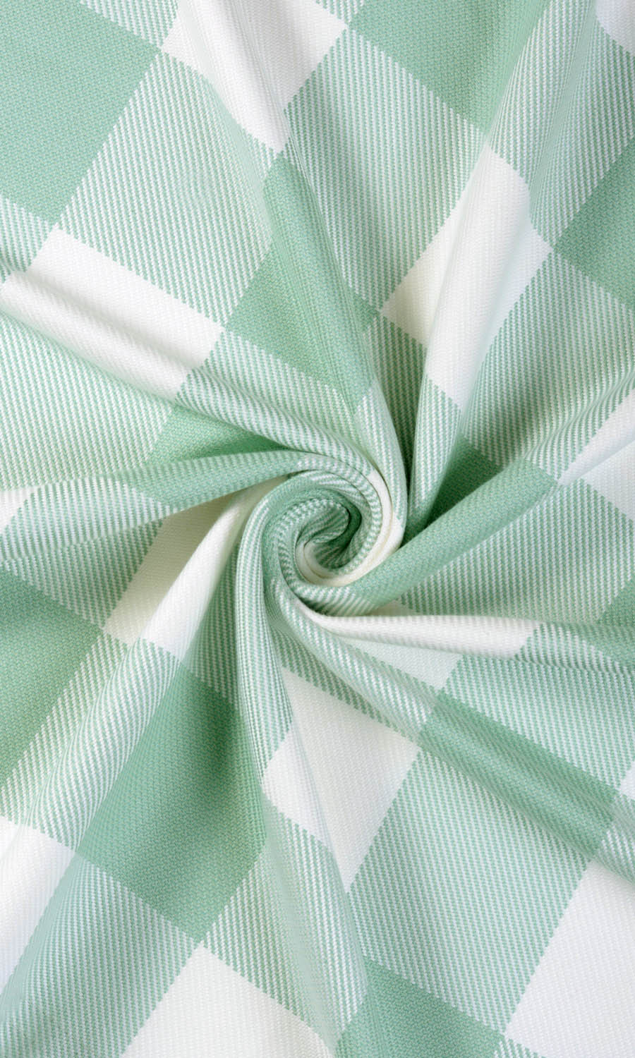 Buffalo checks go placid as tranquil lakes in Aburi. This 100% pure cotton fabric has aqua blue and foam white rows and columns intersecting to create pale blue junction blocks. Completely geometrical yet totally gentle, this fabric is the one to choose when you want your space draped with tranquility.
