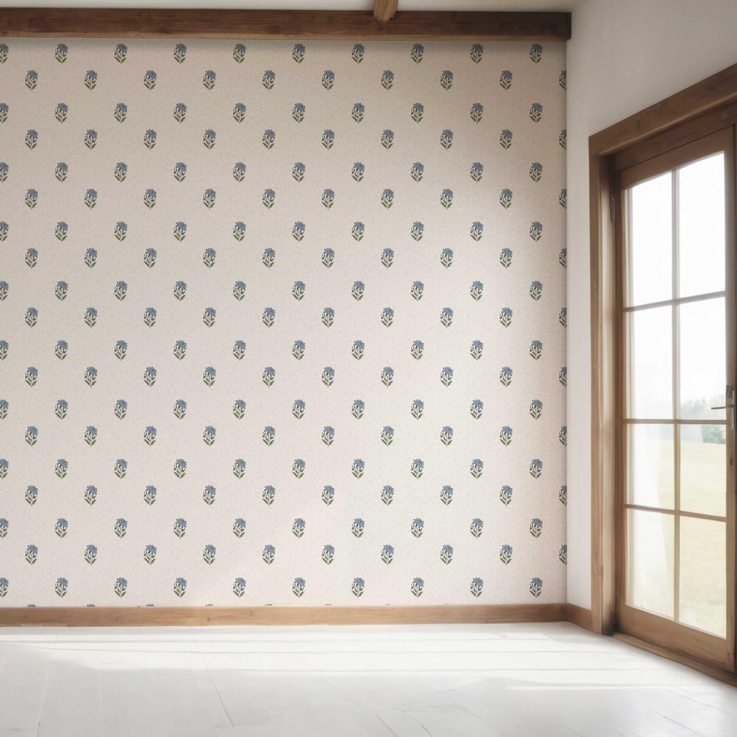 NON-PASTED: ‘Acanthus’ is an unpasted wallpaper installed by applying adhesive paste (not provided by us, but easy to source) to the wall. While peel-and-stick papers do not leave much room to change the paper’s position once you start applying it, the traditional, non-pasted application is more forgiving, allowing for better positioning when matching patterns.