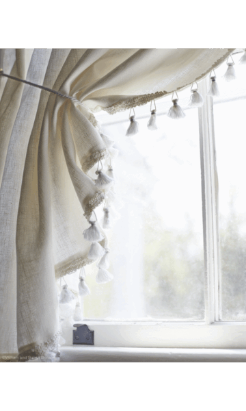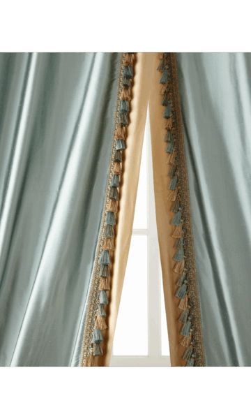 Tassel trims are handsewn on left and right edges of curtain panels.