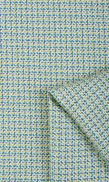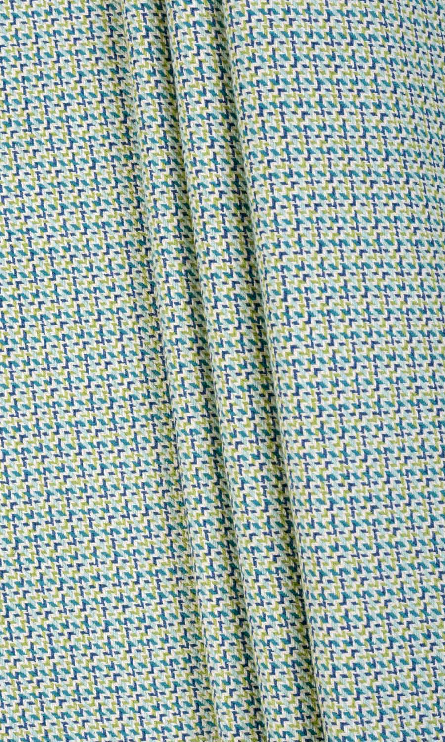 Featuring traditional weaves in contemporary color schemes. This pure cotton fabric has houndstooth checks woven in vibrant colors of ultramarine blue, sea green, lime green and pure white. Cheerful in appearance, cool in ambience and smooth in drape, this fabric has everything you want in your drapery fabric.