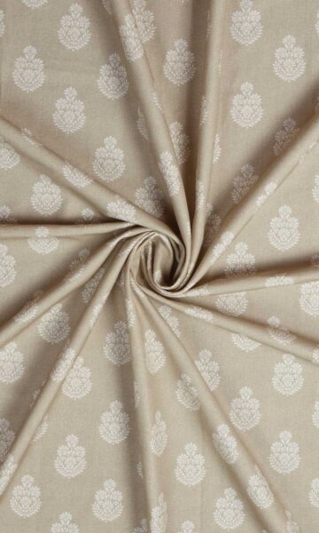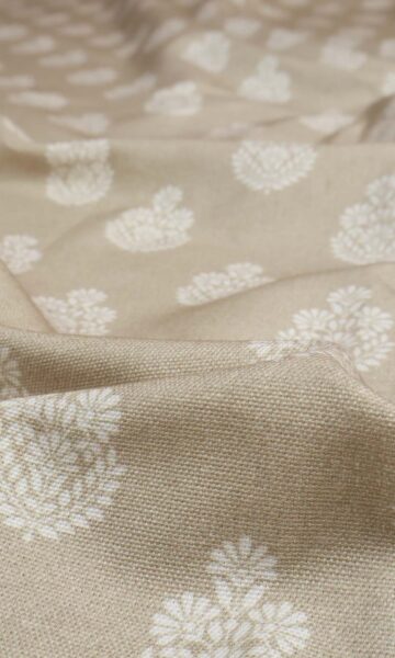 A floral with an old-world charm! Bearing the simple elegance of block print motifs and its invaluable ingredient of the human touch, Alfaaz brings you ethnic Indian florals in a neutral white-on-beige color scheme. Ideal for minimalist homes seeking an inviting eclectic touch, it imbues spaces with understated elegance and a touch of cultural richness.