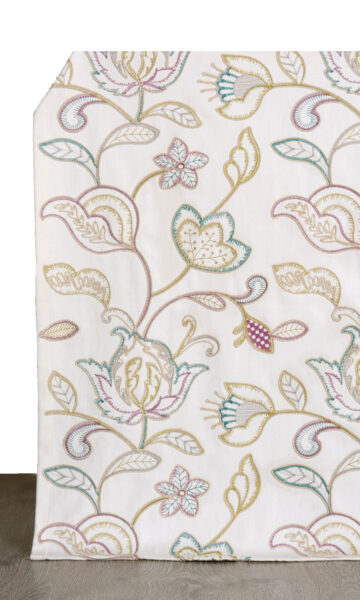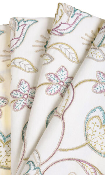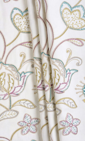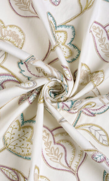 Pastel and white. Vine and floral. Grace and beauty. In Alfold, everything comes together charmingly to create a fabric that’s just so pretty. The all-white backdrop has been embroidered with a lovely vine and floral pattern in pastel shades of pink, green, and beige. Luxury in every stitch, that’s Alfold.