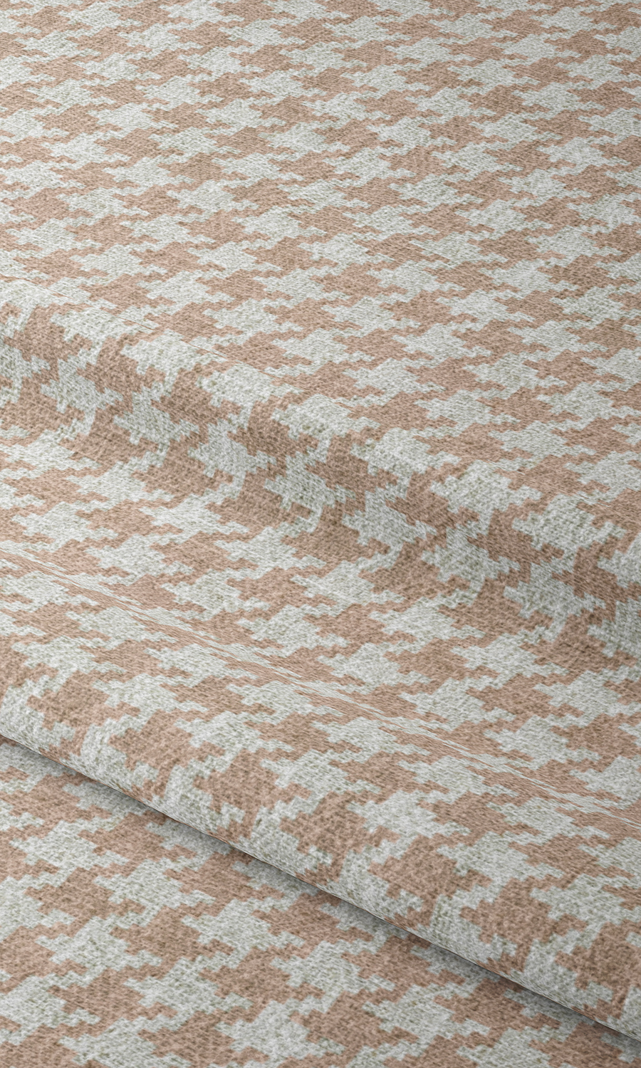 Featuring traditional weaves in contemporary color schemes. This herringbone weave fabric has houndstooth checks woven in blush pink and white. Cheerful in appearance, cool in ambience and smooth in drape, this fabric has everything you want in your window treatments fabric.