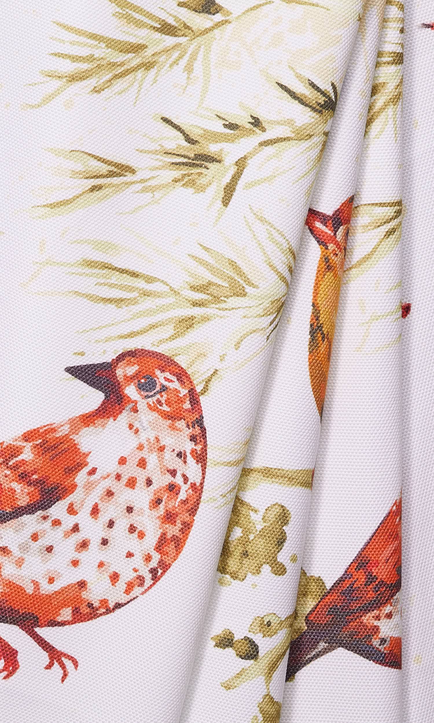 This pretty fabric features a lovely nature print with lark birds, flowers and foliage motifs on a tonal ivory and beige backdrop. A vibrant color palette with oranges, pinks and browns enlivens any space. A charming choice for an informal space