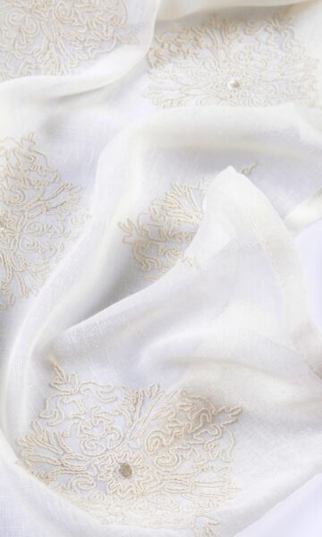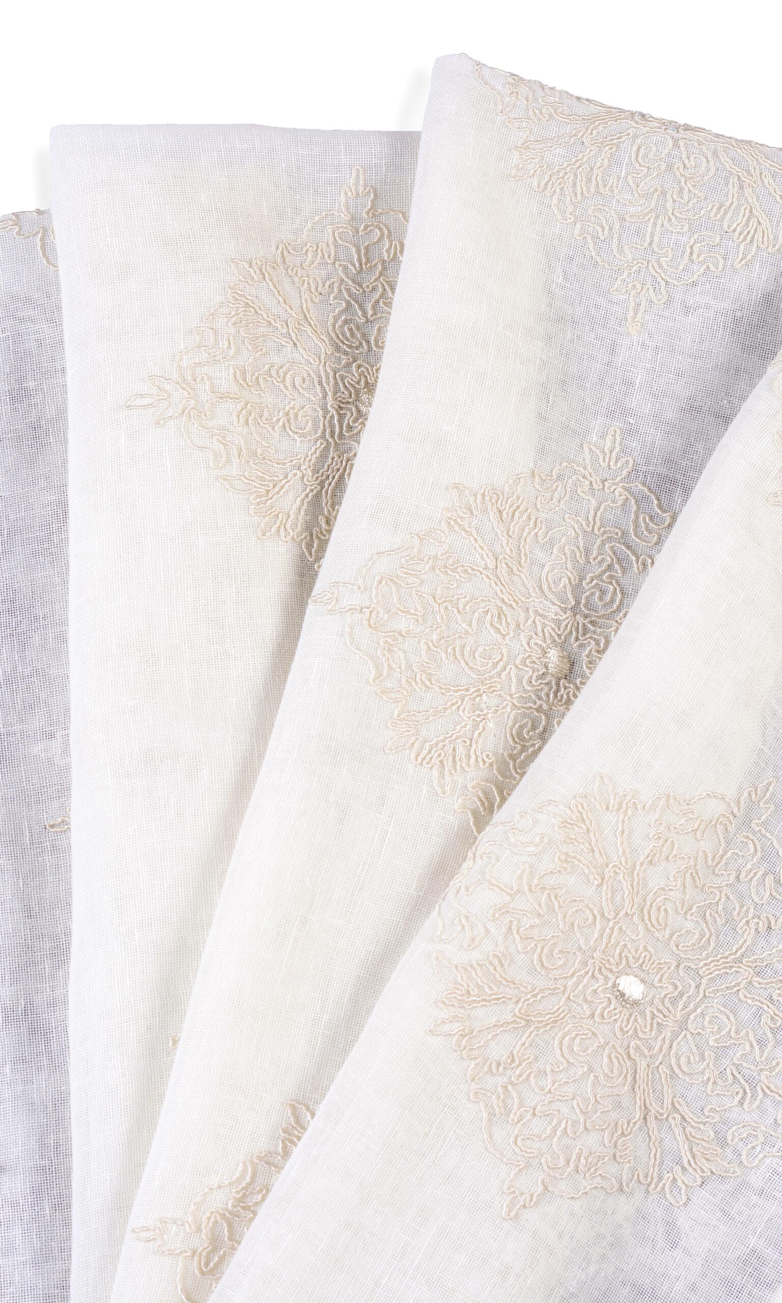 When a white sheer meets nimble floral embroidery, you get a stunner like Angel Cloud. Its oversized ornate motifs featured in a scattered layout make it a great finishing touch for a traditional/transitional/eclectic space. The neutral palette offers immense versatility to team up with any palette, making it equally suitable to counter the vibrance of colorful rooms or to serve as the touchstone feature of a neutral color scheme.