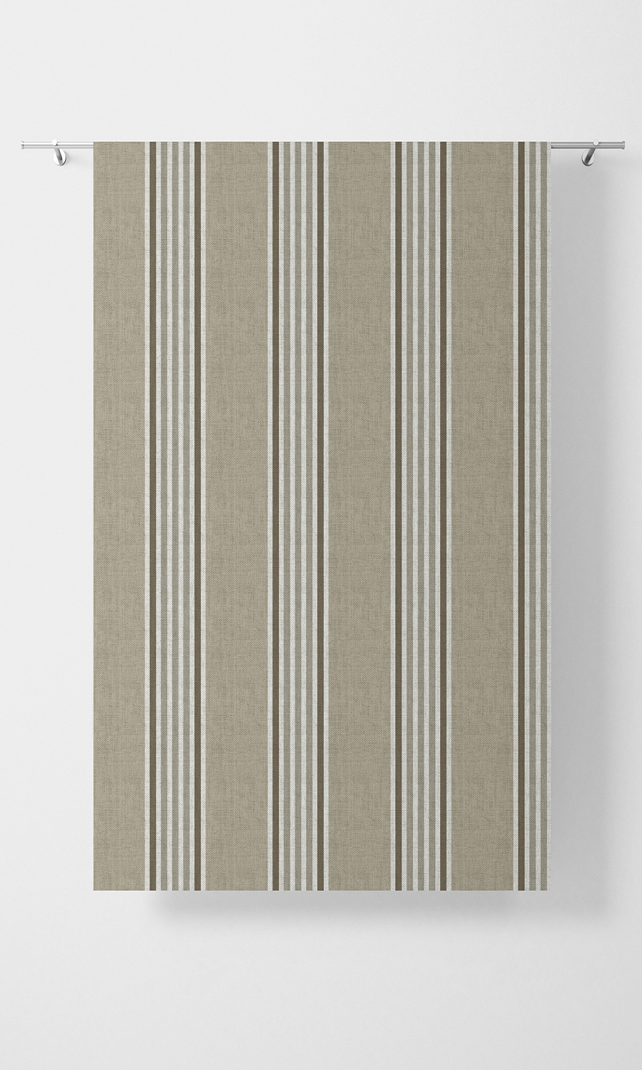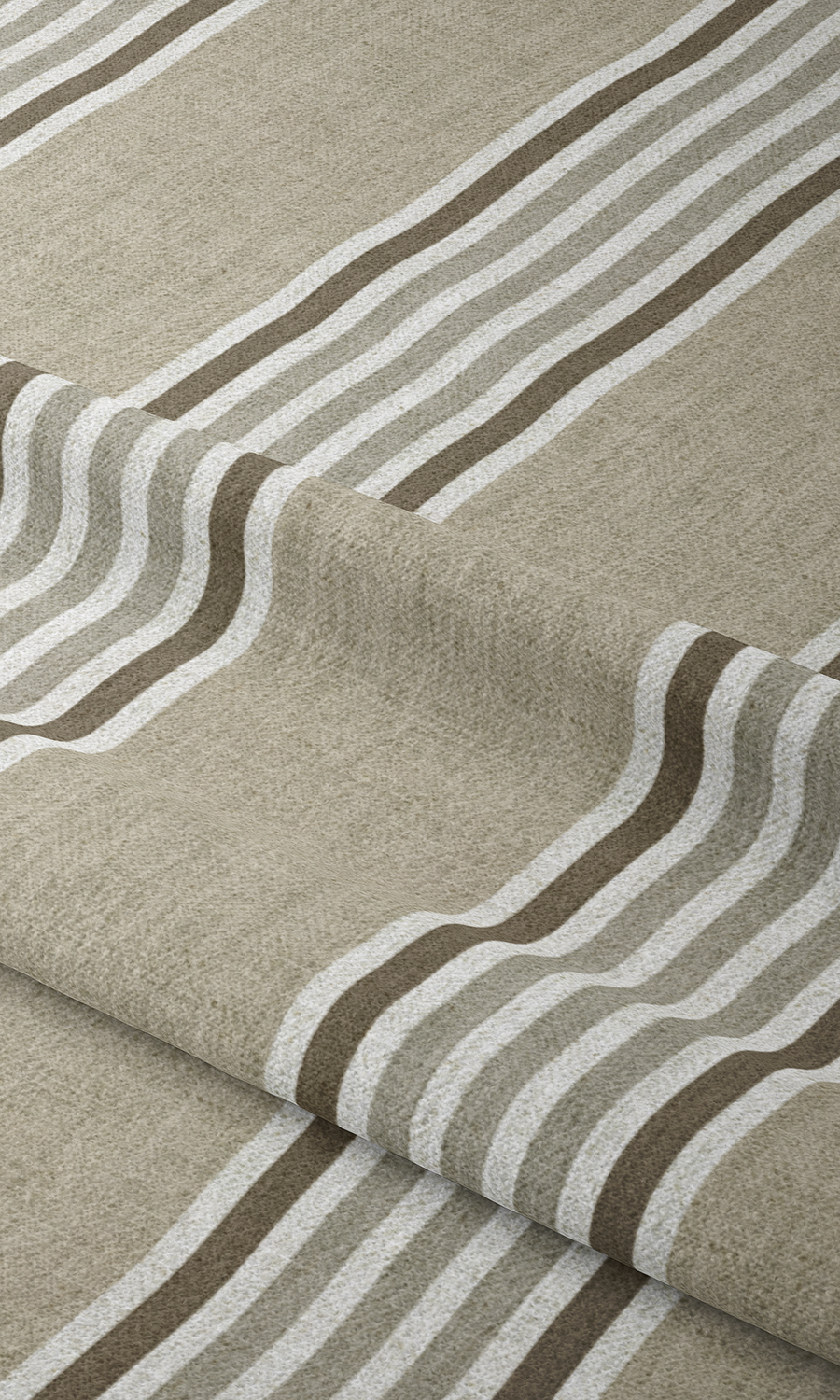 Create a restful mood for your living room or bedroom with this lovely fabric. Featuring a repeating pattern of wide and candy stripes, Antarctic Ice has a rich herringbone weave base. It boasts neutral hues of wheat beige, pale grey and peanut brown that will bring a touch of elegance to your living space. Suited to many different decorating styles, including classic, transitional and mid-century, we recommend this fabric in flat panel roman shades and casual style drapes.?
