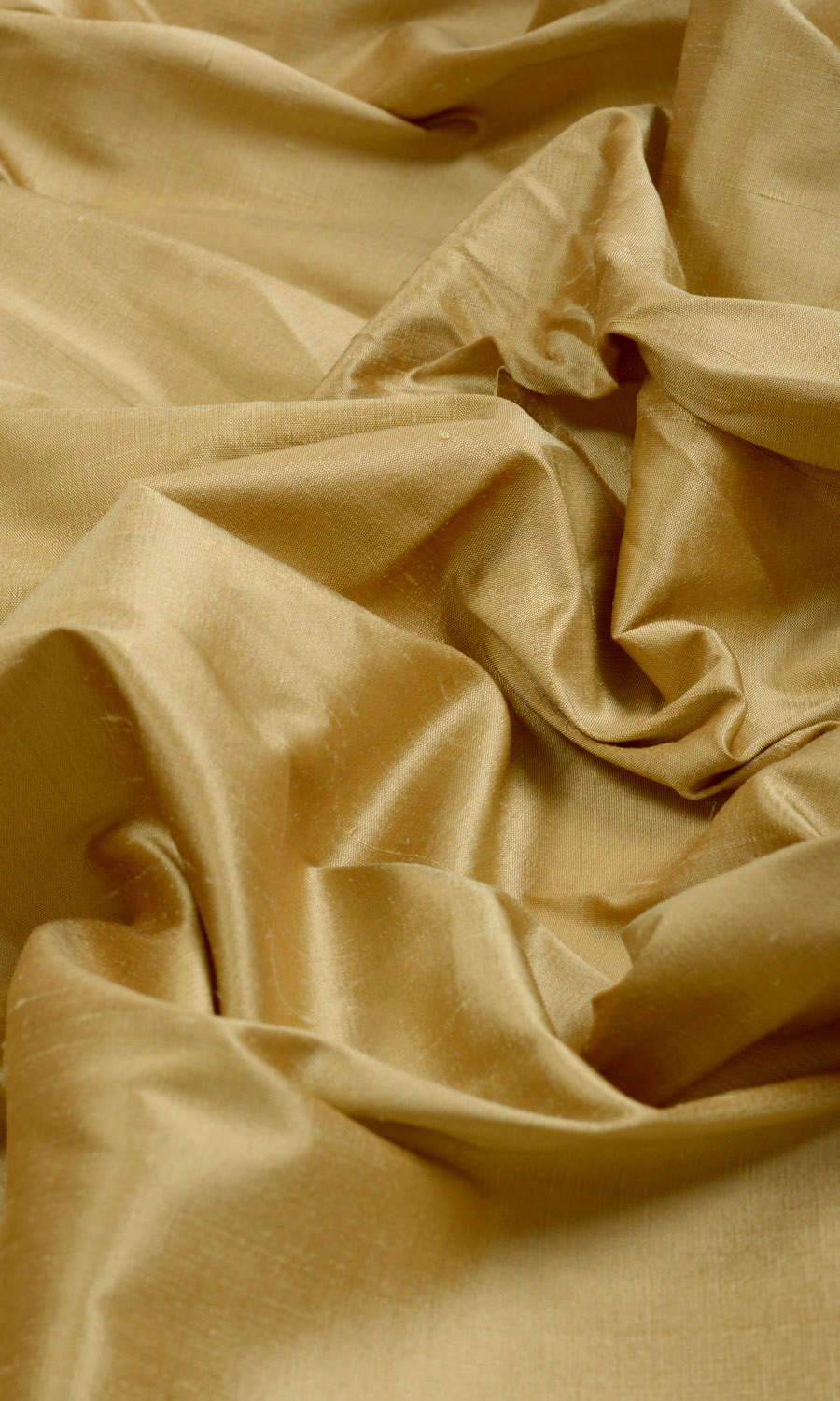 A fabulous pure silk fabric in a mellow wheatish beige/biscotti yellow color. Its silken slub feels seductively inviting. The neutral color is all understated luxury that works well wherever you wish to create an exclusive yet welcoming space.
