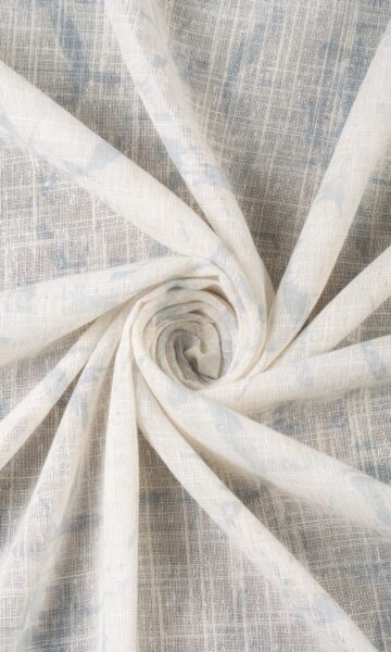 A white sheer that stands out from the rest with its rich slubbed texture and a unique abstract print. Its soft gray strokes offer just the right bit of visual interest that can be the subtle pattern and the mild dose of oomph you might be aiming to add to a modern space. Welcome diffused light and lovely shadows with this linen, made dimensionally stable and sturdy by its collaboration with polyester.