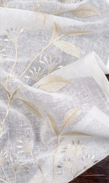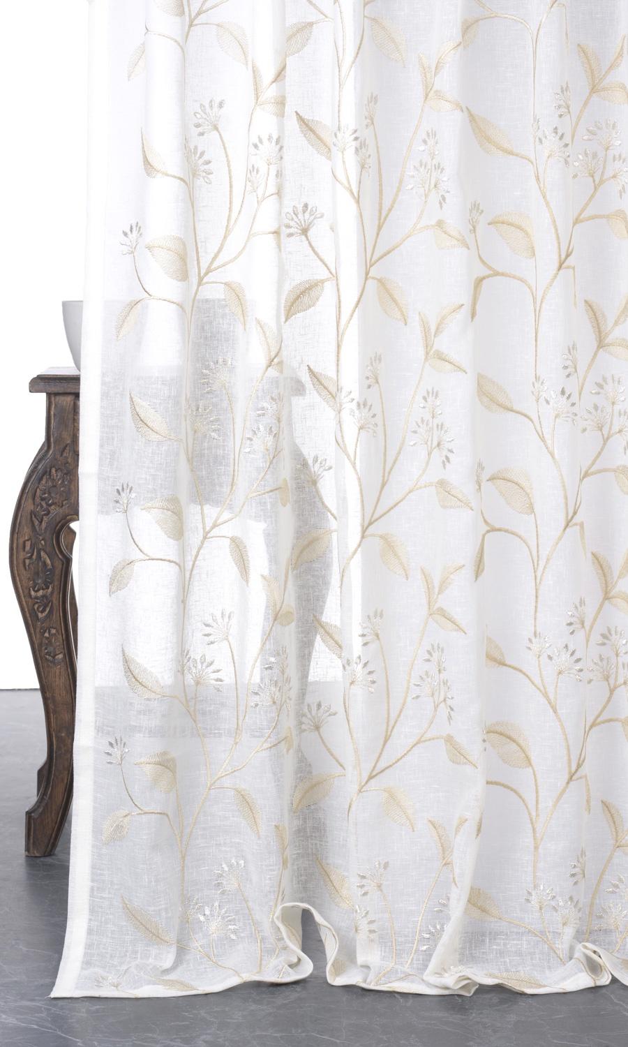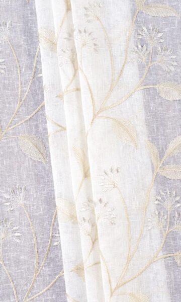 Floral sheers in quiet neutrals! Offering a modern twist to a traditional motif, florals take a streamlined neutral-toned avatar in this white-beige sheer, making it suitable for both traditional and contemporary homes alike. Make use of the transparency to add daytime privacy without blocking all light!