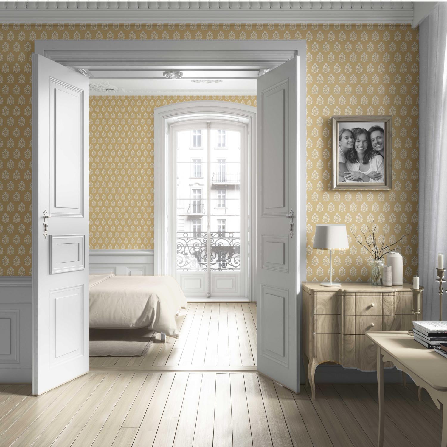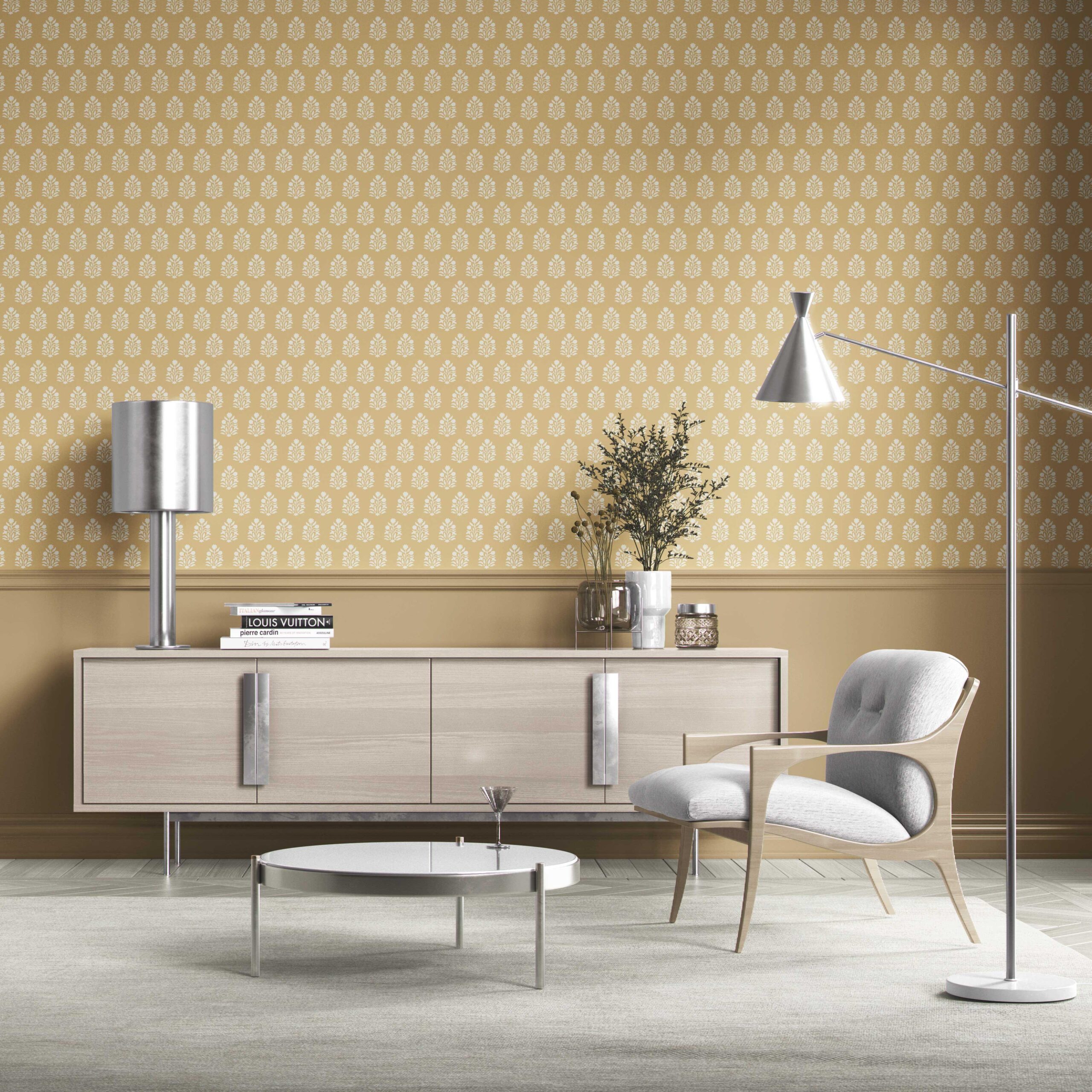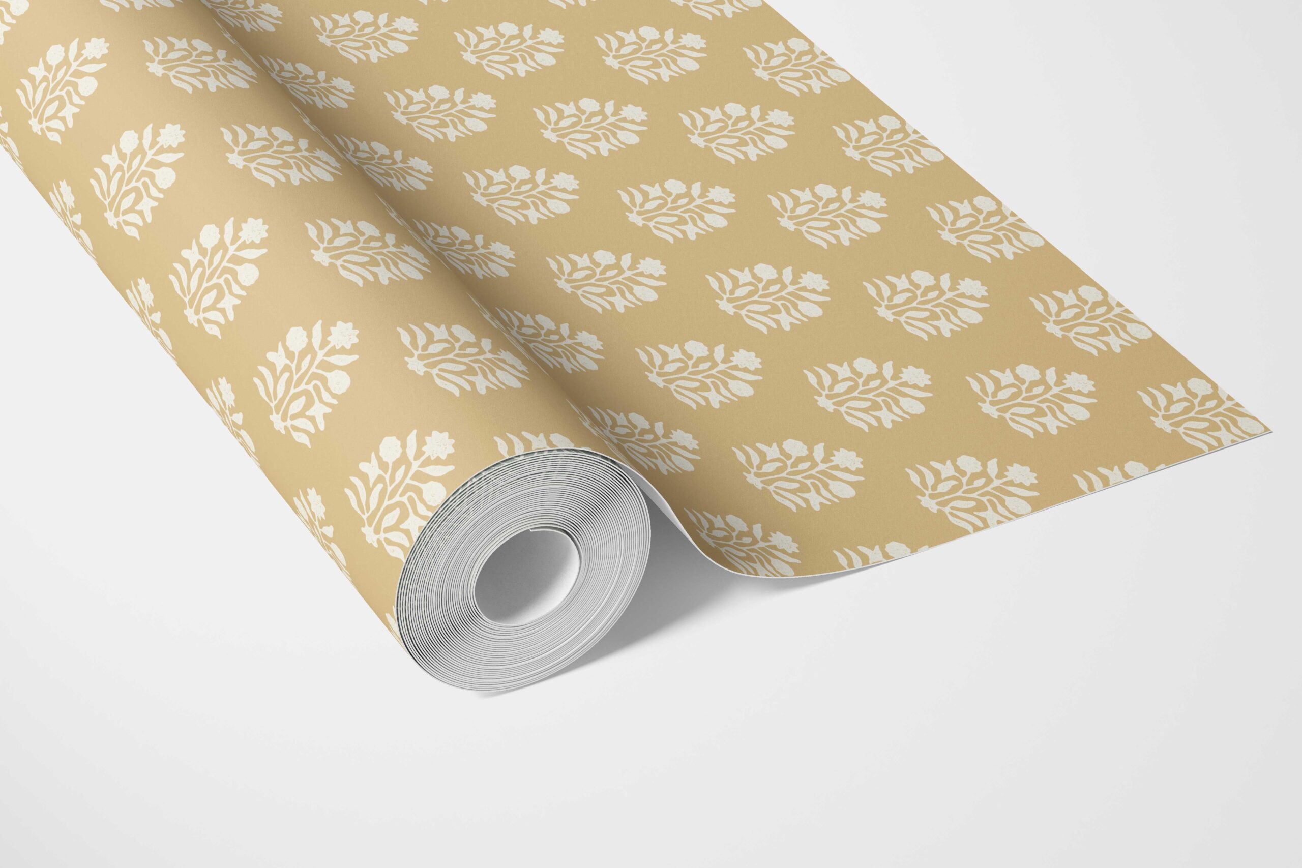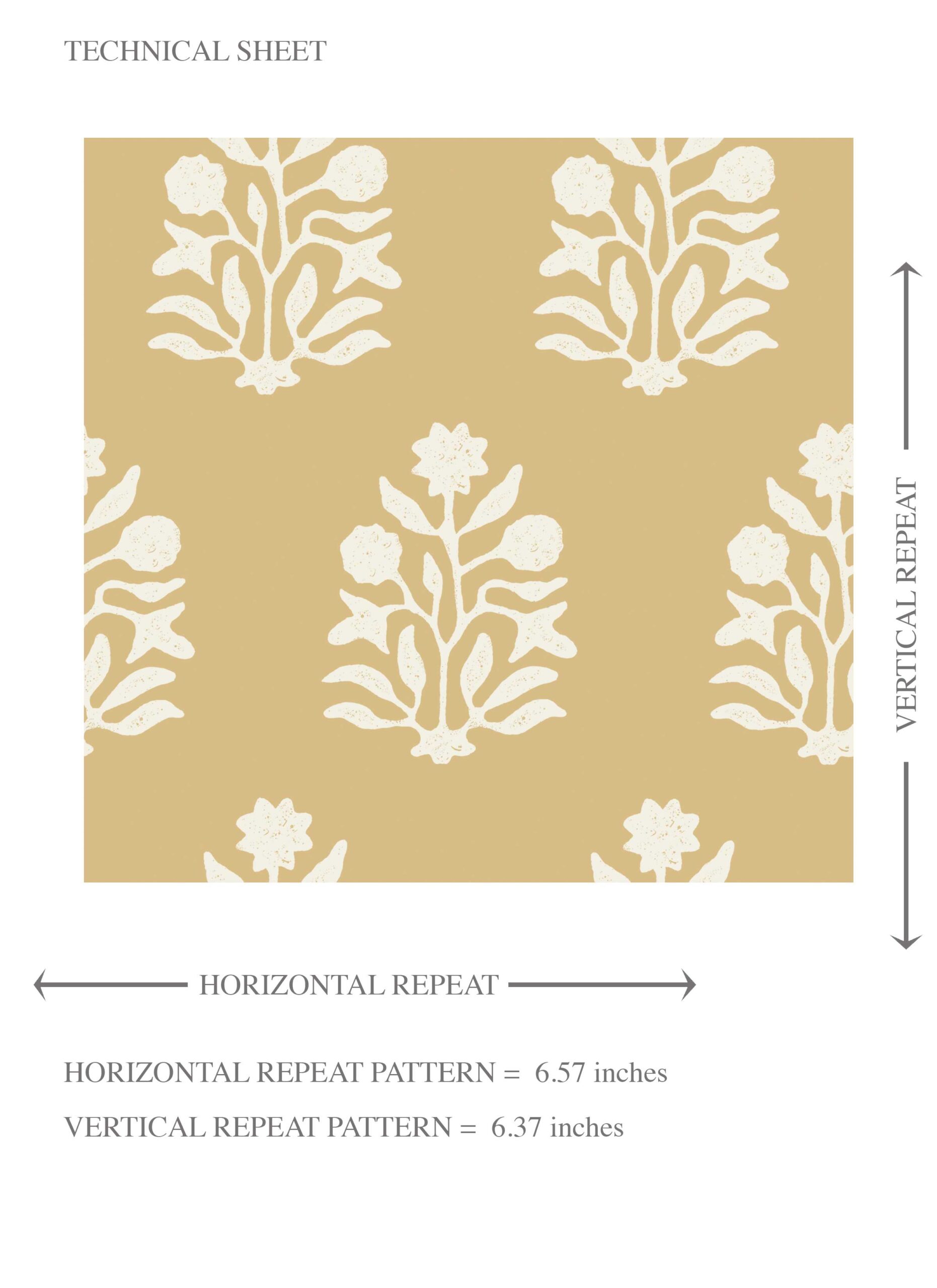 ‘Aristos’ Vintage-Inspired Botanical Floral Block Print Wallpaper (Yellow/ Cream)