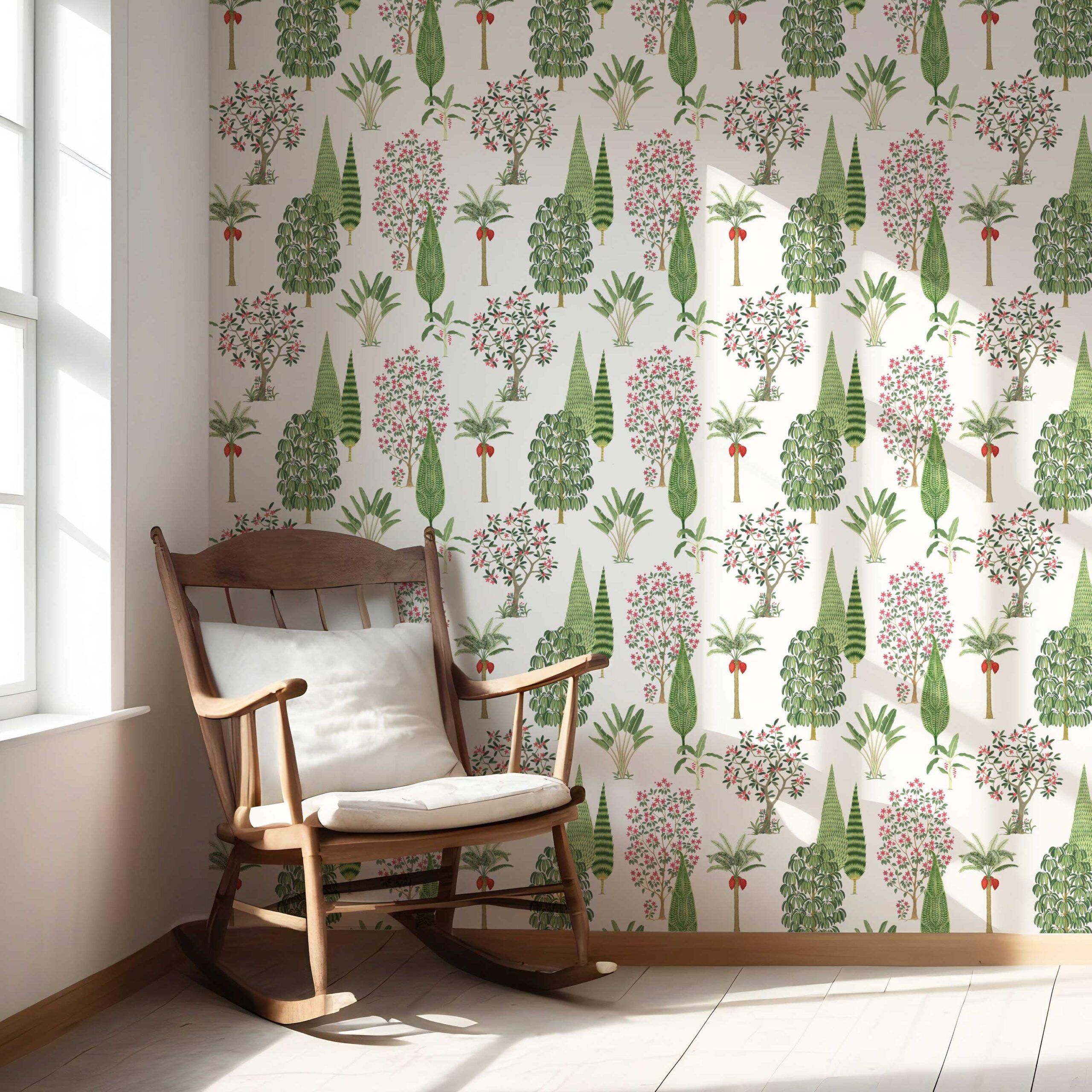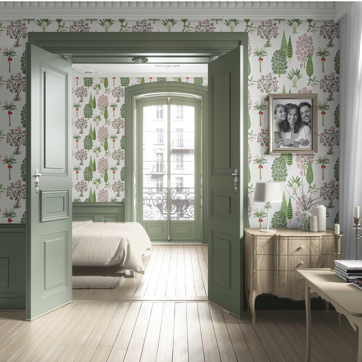 NON-PASTED: ‘Aromatic’ is an unpasted wallpaper installed by applying adhesive paste (not provided by us, but easy to source) to the wall. While peel-and-stick papers do not leave much room to change the paper’s position once you start applying it, the traditional, non-pasted application is more forgiving, allowing for better positioning when matching patterns.