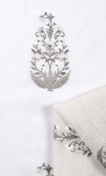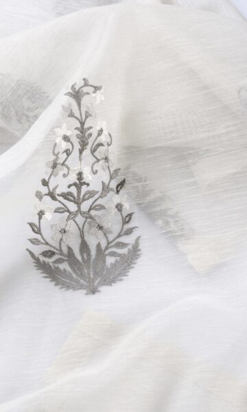 A showstopper paisley. Floral elegance in neutral colors and nimble embroidery merge with paisley to make a jaw-dropping feat. Artha will veritably steal the show, not with fanfare and hullabaloo, but with a soft whisper, a gentle breeze, a silent gaze! Pair with solid gray drapery in a dreamy bedroom or let it shine alone on a sunny patio door – this diva will set the stage ablaze.
