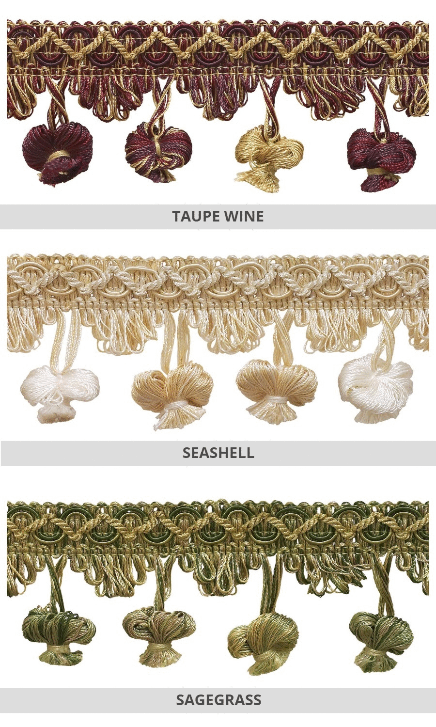 Dress up your custom curtains with our delightfully rich tassel trims.