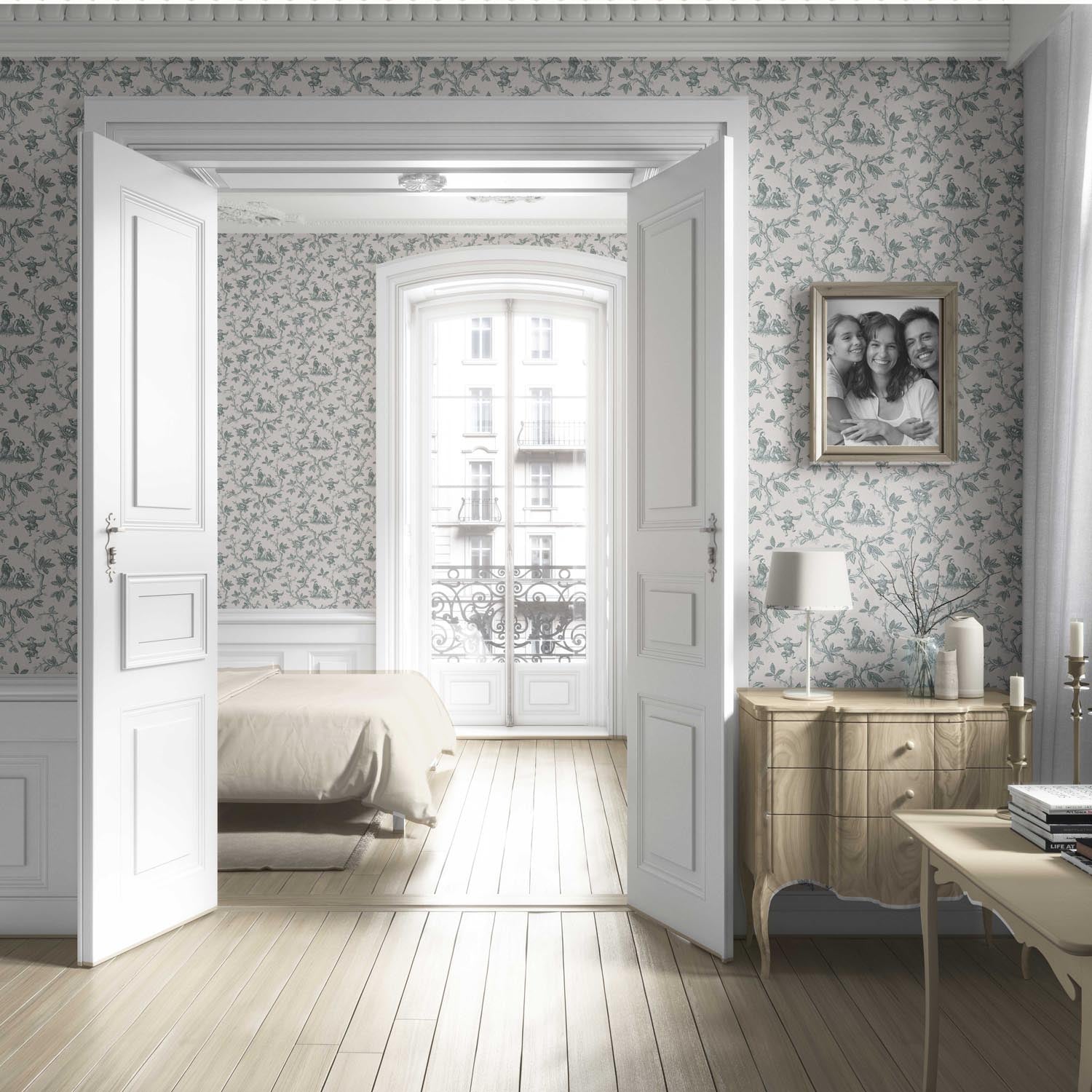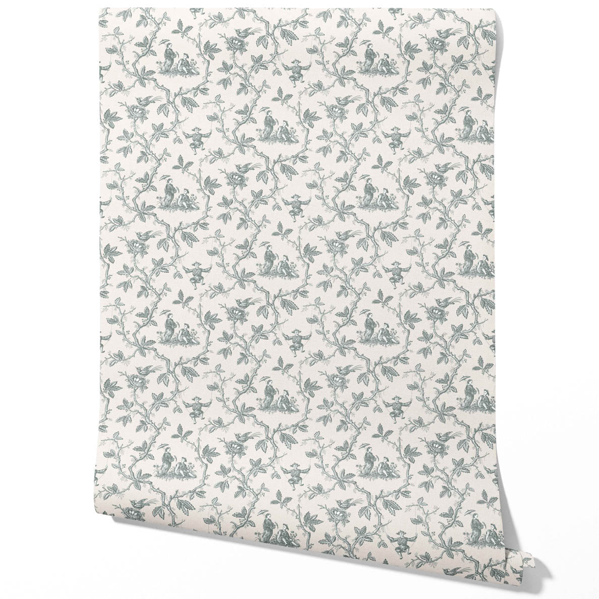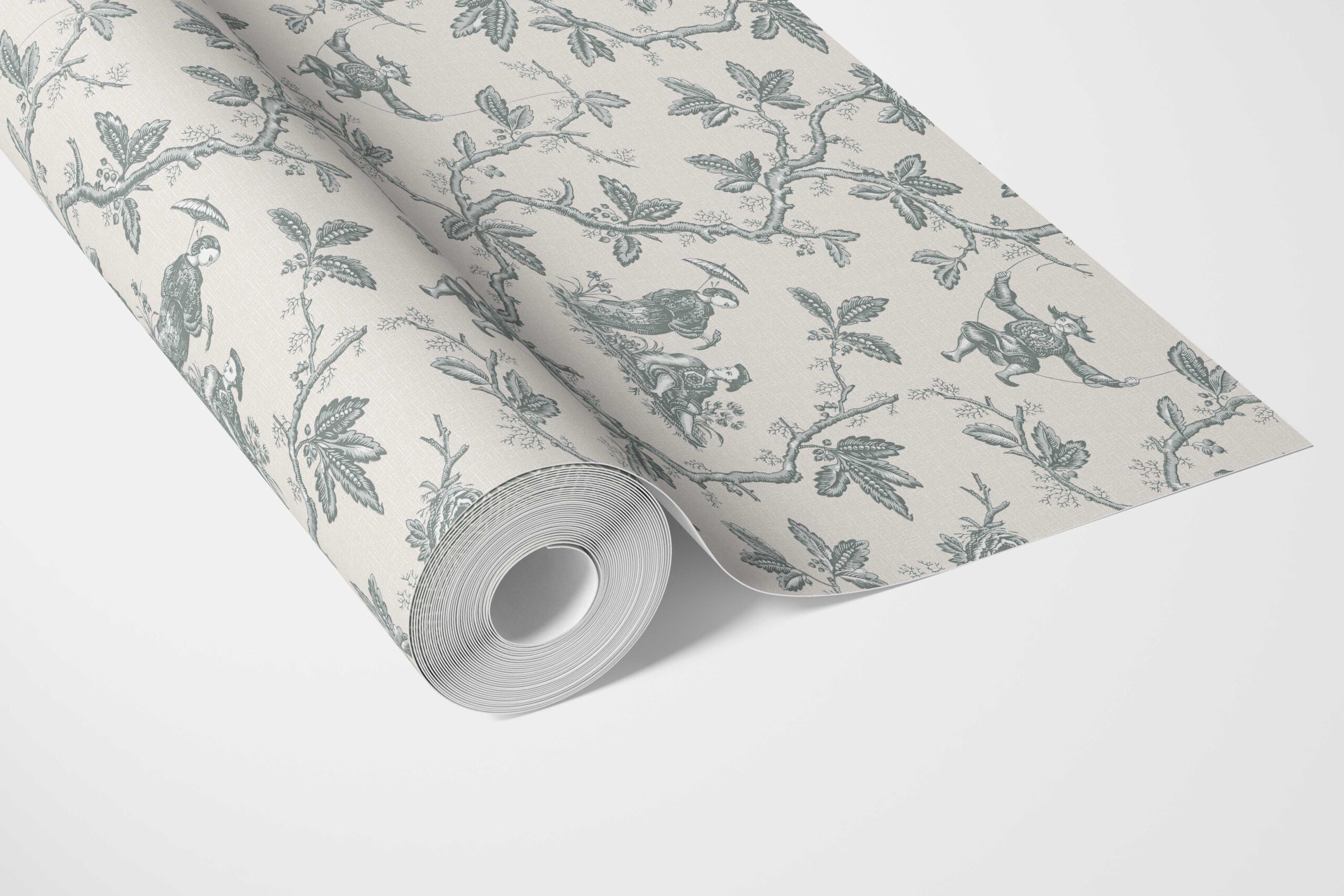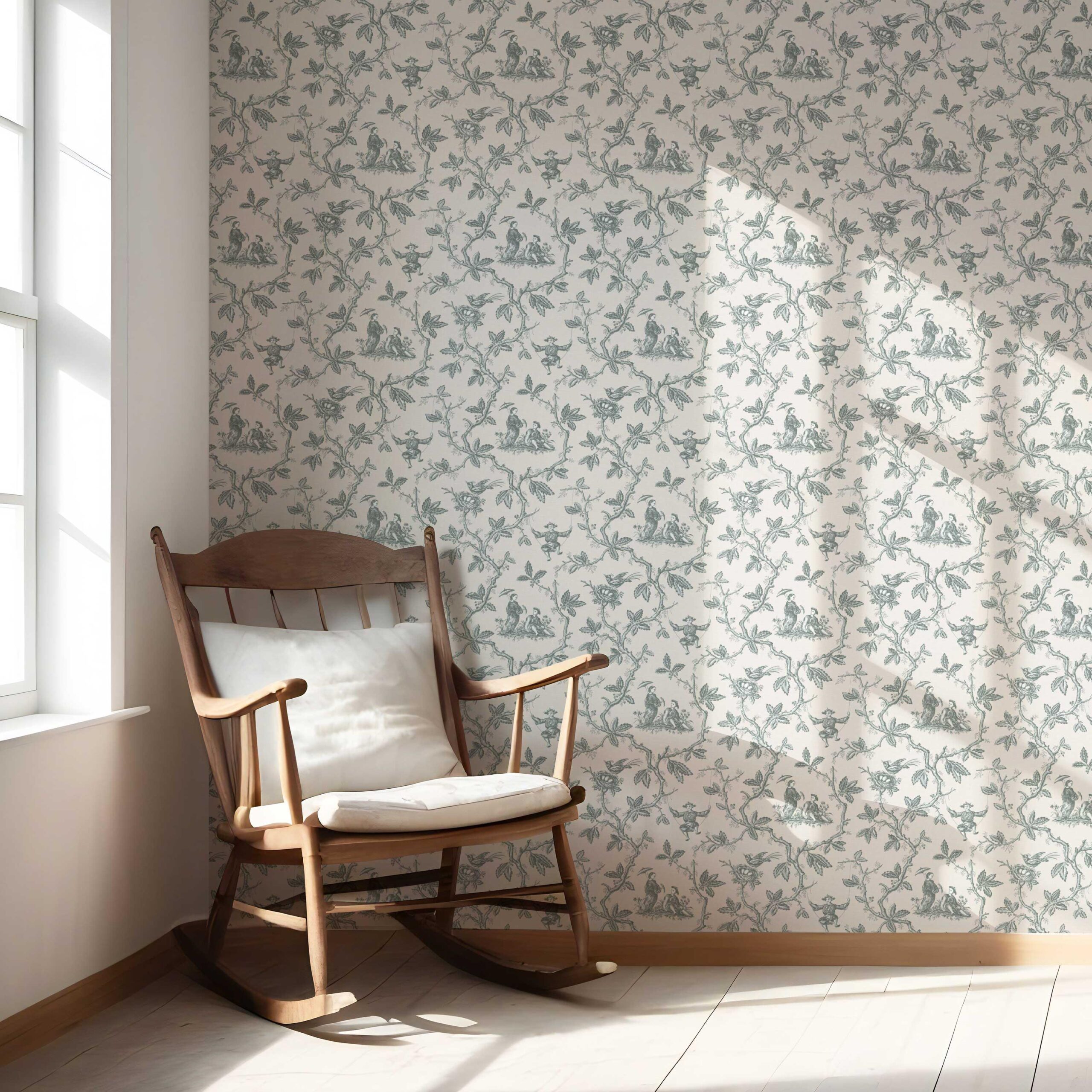 ‘Aruacana’ Floral Toile de Jouy Wallpaper (Blue-Gray/ Off-White)