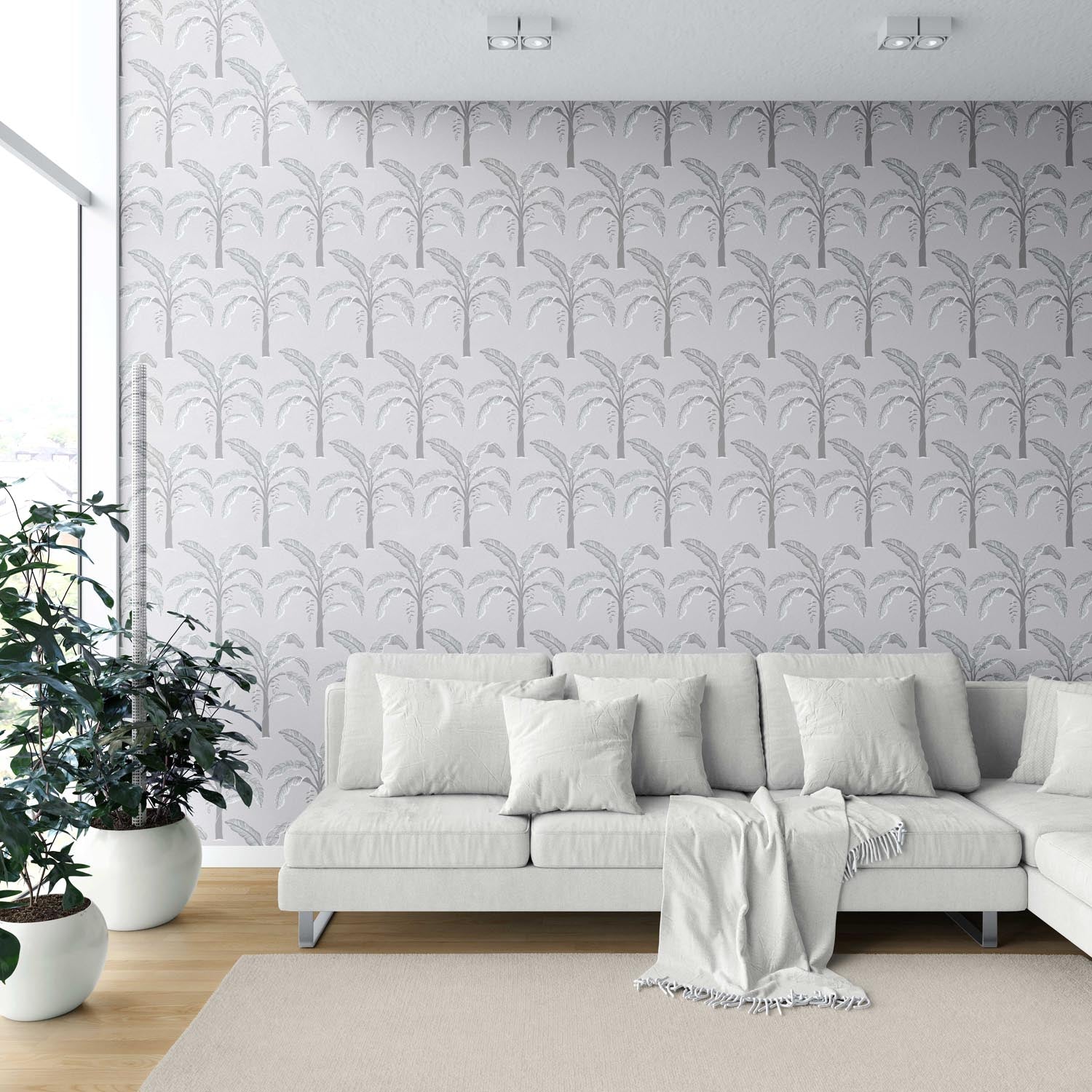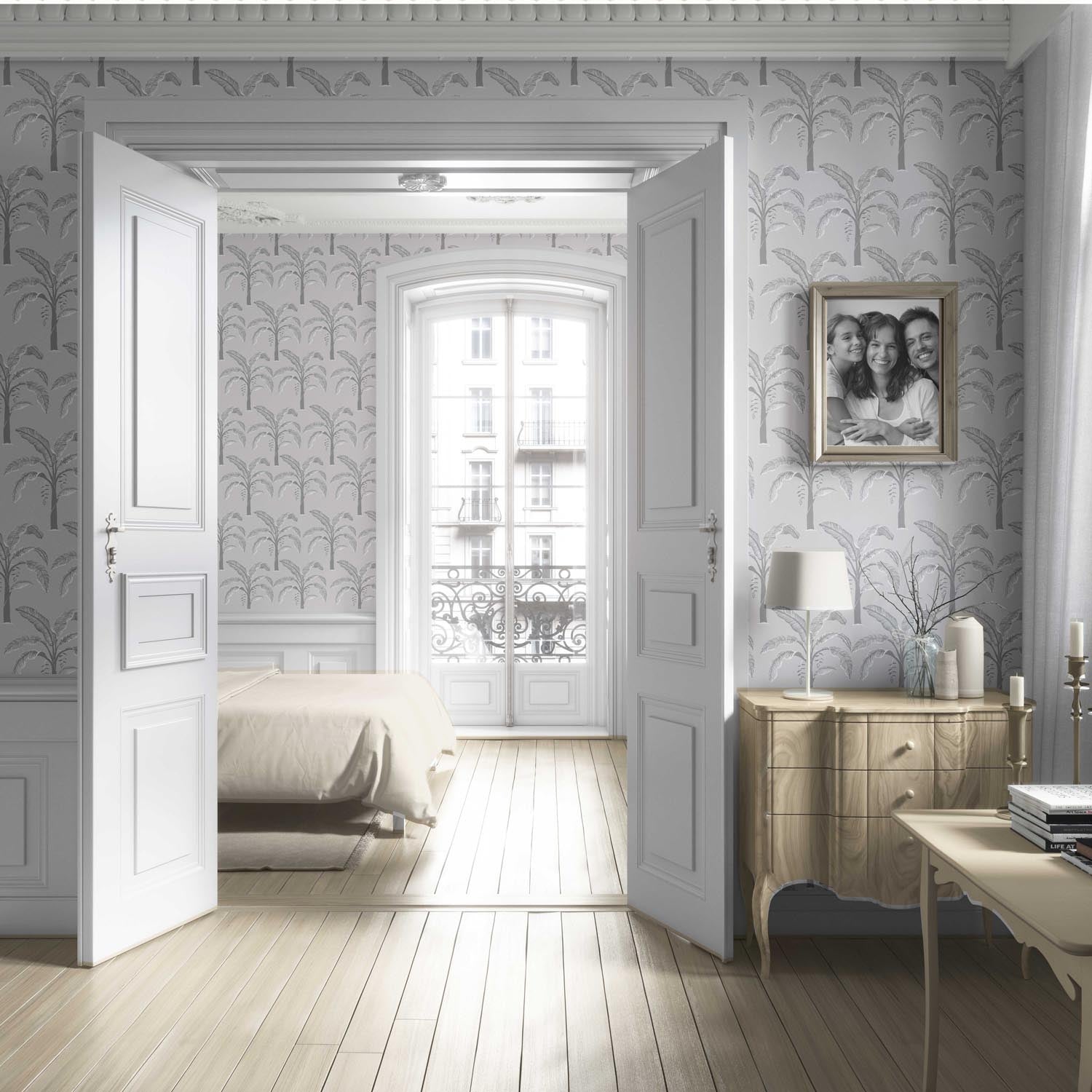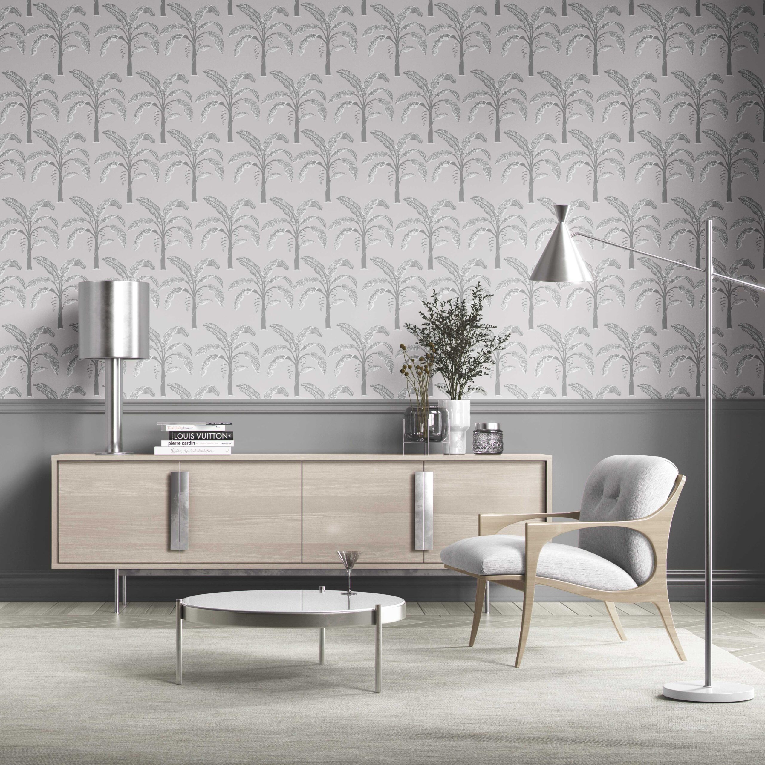 ‘Asprilla’ Floral/ Botanical Palm Trees Patterned Wallpaper (Gray)