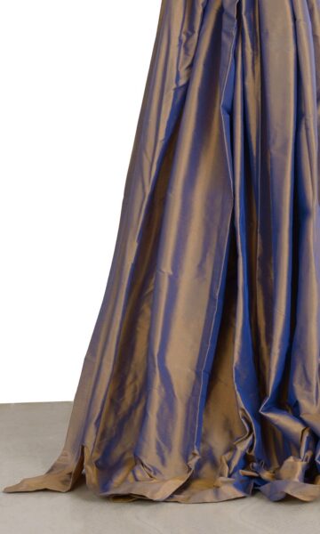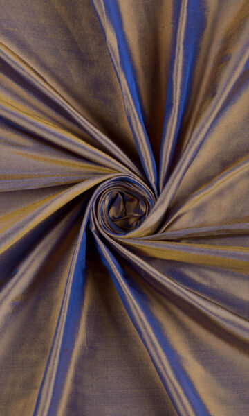 Power with polished sheen, this two-tone pure silk fabric in purple and gold will give any space a royally powerful aura. Impressive, no-nonsense, and splendid. Echo a traditional formal living room’s glamorous excesses and complete Hollywood regency’s bold foray into dark hues with Asteca’s resplendent deep purple.