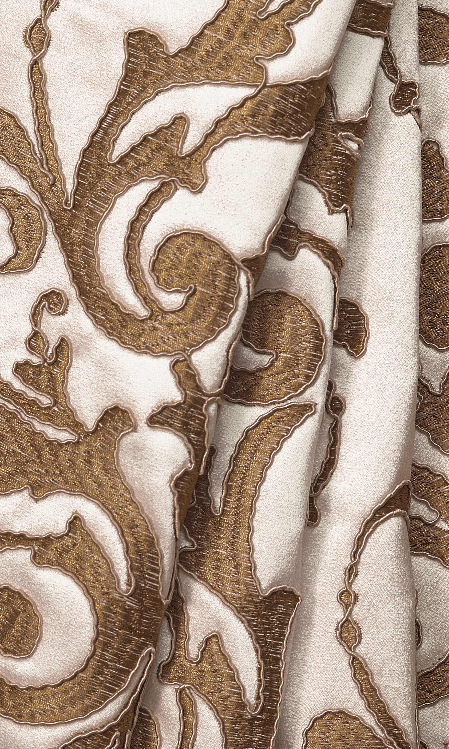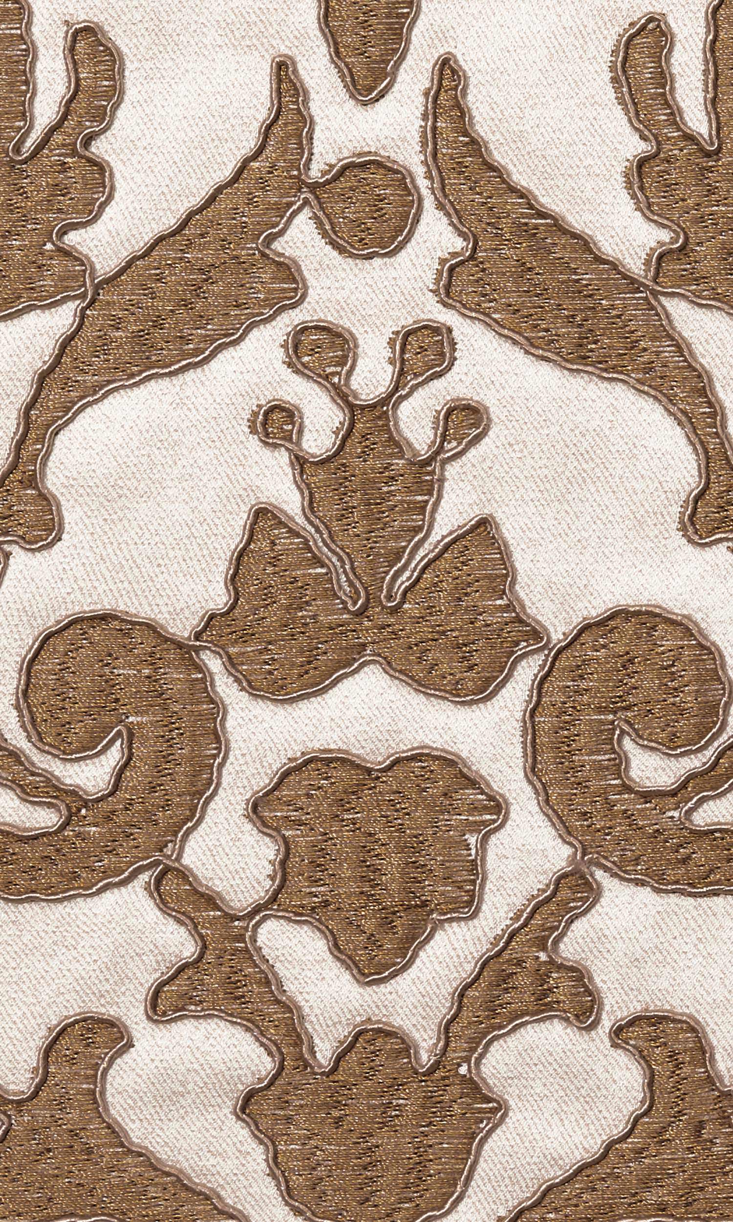 When your room needs a finishing touch of real class, drape it with this exquisite embroidered fabric with running columns of a classic tendril motif. The color scheme of soft white and warm brown is utterly gorgeous. The embroidery’s beauty gets extra definition with raised edging effect.