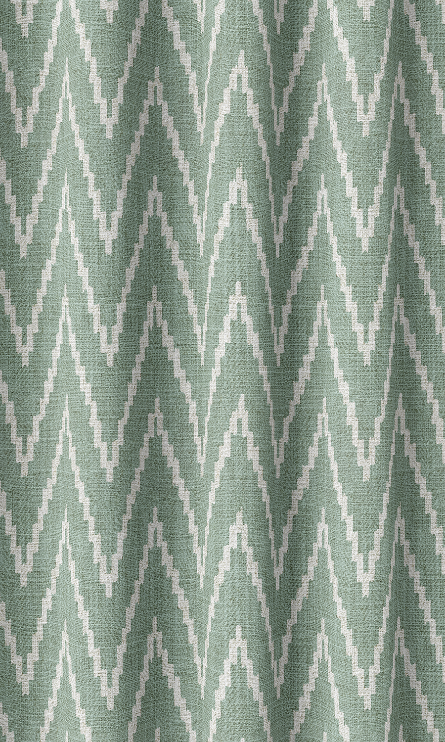 Tired of uninspiring florals and checks in your furnishings? Take a look at this geometric fabric on a texturally rich herringbone weave base for a stunning alternative. Its duck blue and white chevron pattern ripples and brightens up a space in seconds.