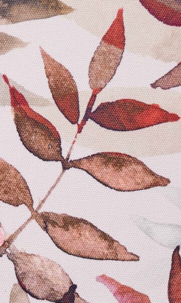 This nature-inspired printed fabric features fern frond motifs in shades of red and gray on a white background. The simple yet stunning design with watercolor layering effect and an eye-catching red, gray and white palette create a lively ambience. Bright and beautiful!