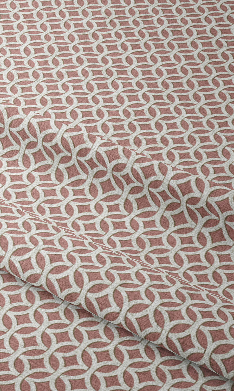Featuring an intricate pattern of circles with inset diamonds, this geometric patterned fabric looks stunning in a rose pink and white palette. Curvy features of the pattern contrasting the straight finishes of other decor elements in the room will offer a visually impressive counterbalance. Moderate scaling lends this fabric the versatility to adorn rooms of any size. Window treatments in its soft and muted palette will blend easily with decor styles that employ light and bright hues.