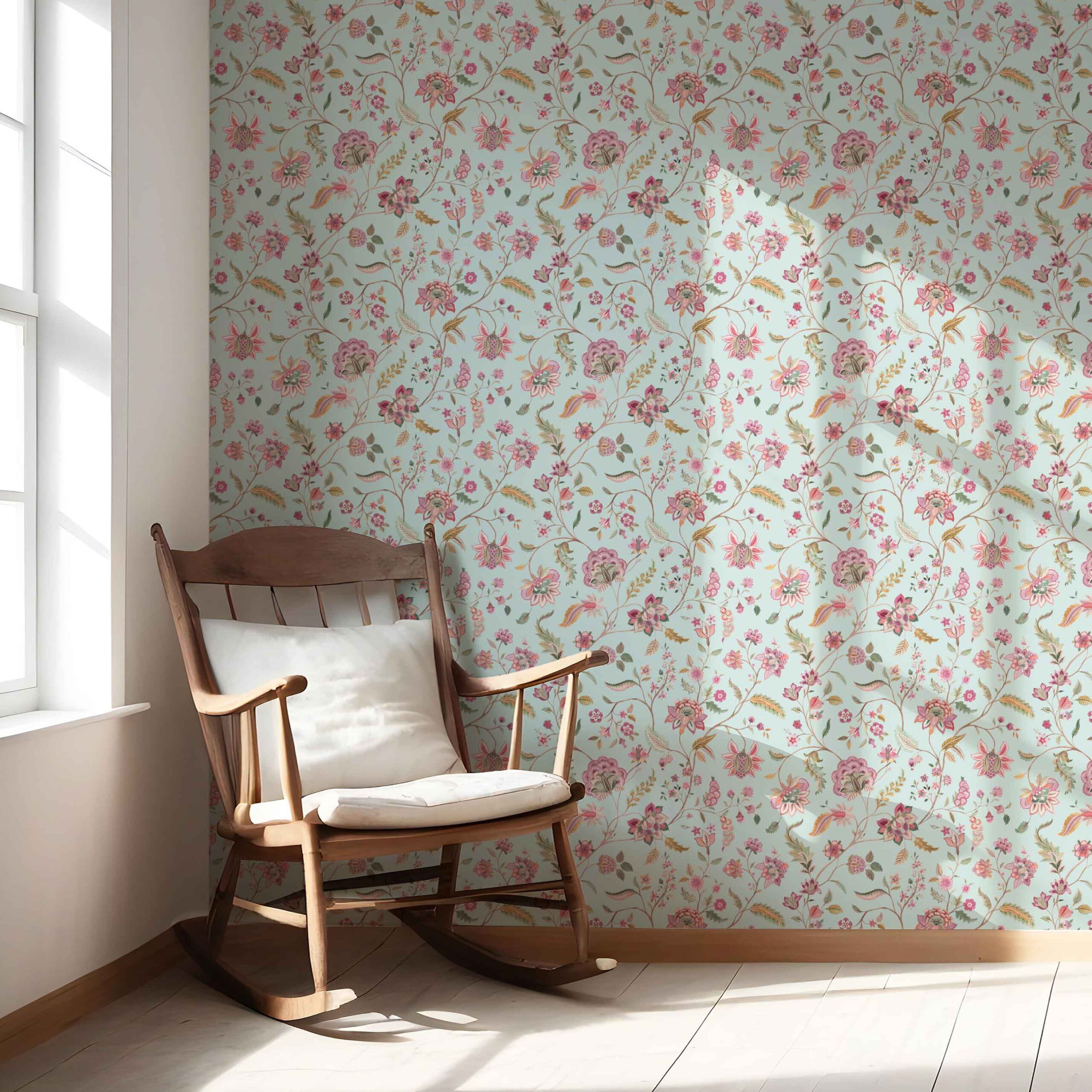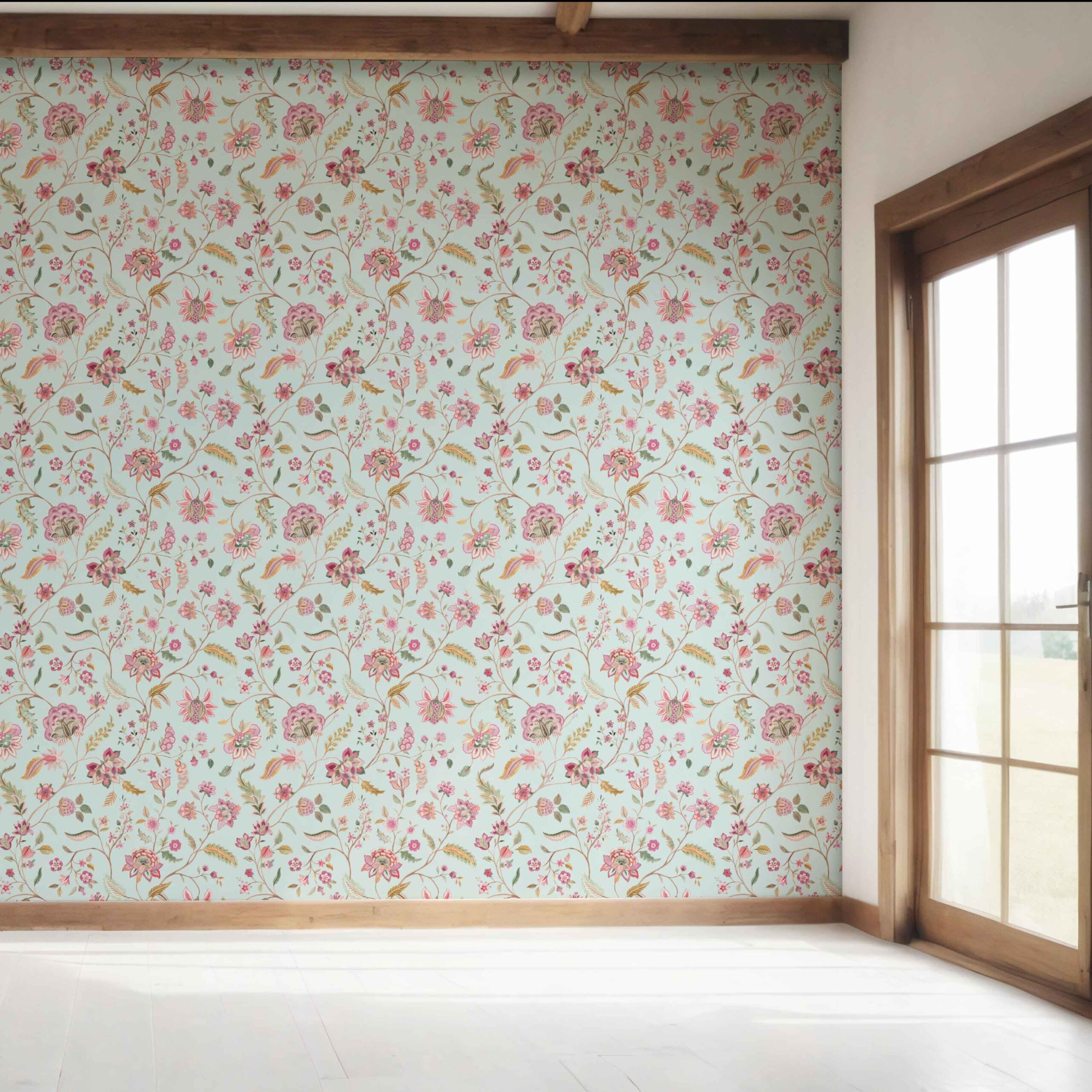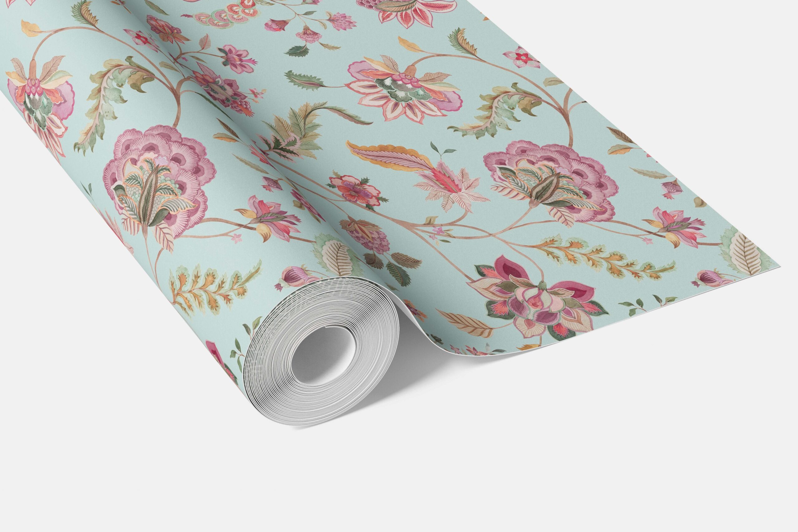 NON-PASTED: ‘Badami’ is an unpasted wallpaper installed by applying adhesive paste (not provided by us, but easy to source) to the wall. While peel-and-stick papers do not leave much room to change the paper’s position once you start applying it, the traditional, non-pasted application is more forgiving, allowing for better positioning when matching patterns.