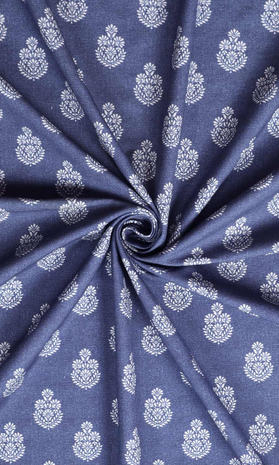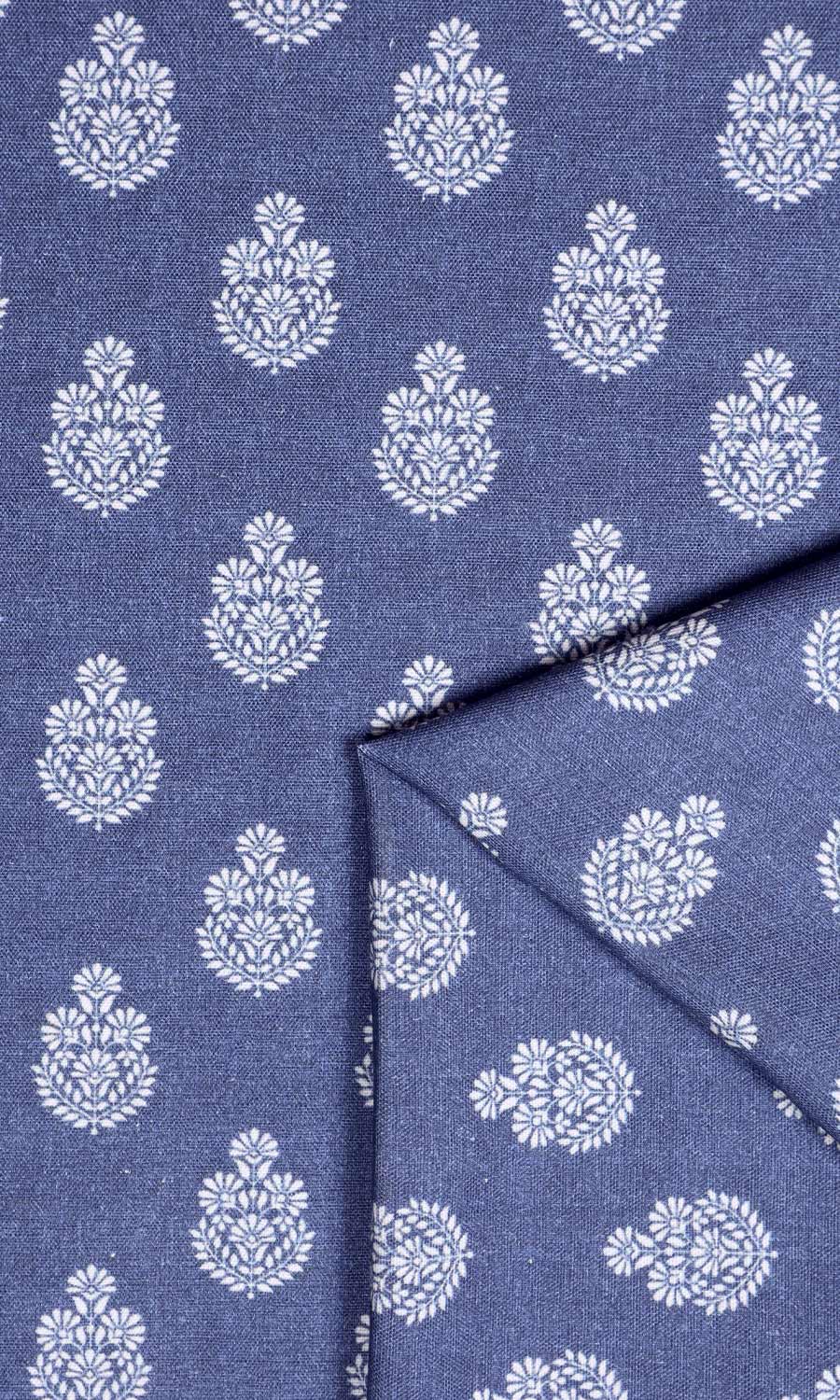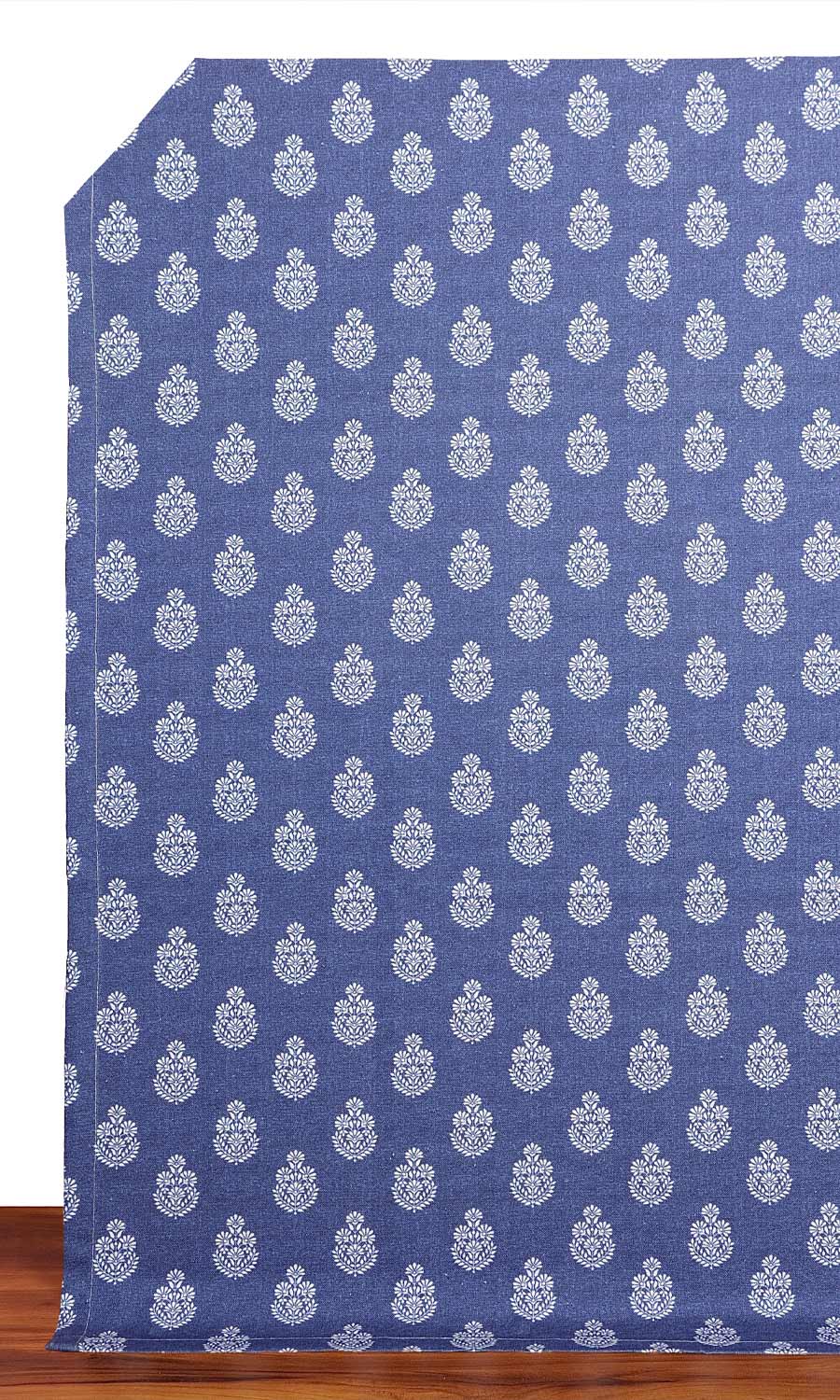 Floral bliss with elegant craftsmanship. A beautiful block-printed Indian floral piece with intricate details and deep colors. Add this exotic piece to your potpourri of special finds and antique treasures to elevate its eclectic character further. And, counter a warm color scheme with the cooling vibes of its blue-white palette.
