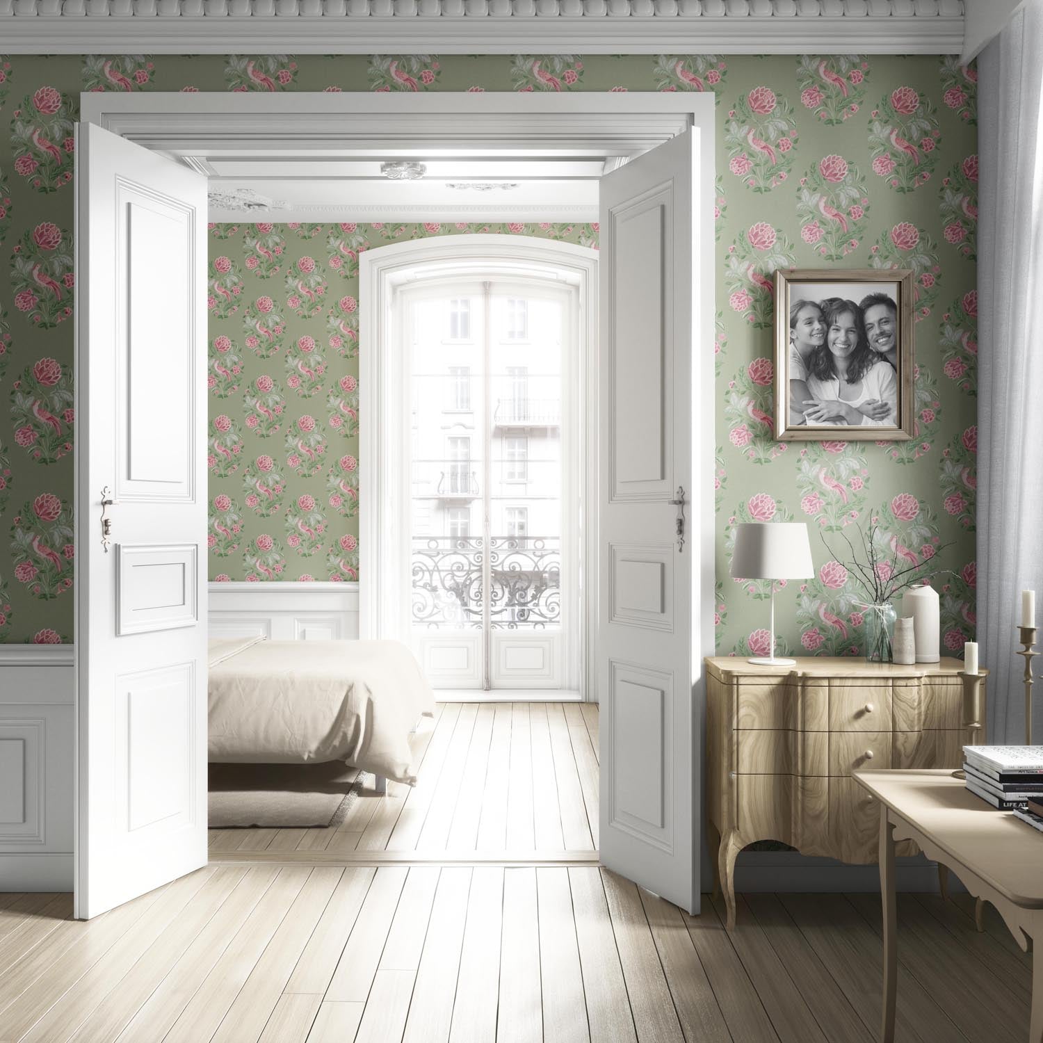 NON-PASTED: ‘Ballens’ is an unpasted wallpaper installed by applying adhesive paste (not provided by us, but easy to source) to the wall. While peel-and-stick papers do not leave much room to change the paper’s position once you start applying it, the traditional, non-pasted application is more forgiving, allowing for better positioning when matching patterns.