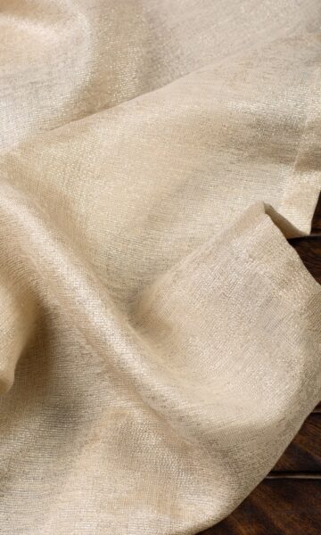 Golden mist! Regality and glamour blend in this gold-speckled golden-beige semi-sheer that paints the interiors with aureate luster, diffused light and gauzy texture. Let this diva add glamor to a formal living room, pizzazz to a Hollywood regency bedroom or echo the accents of a gold-tinged damask wallpaper in a traditional space.