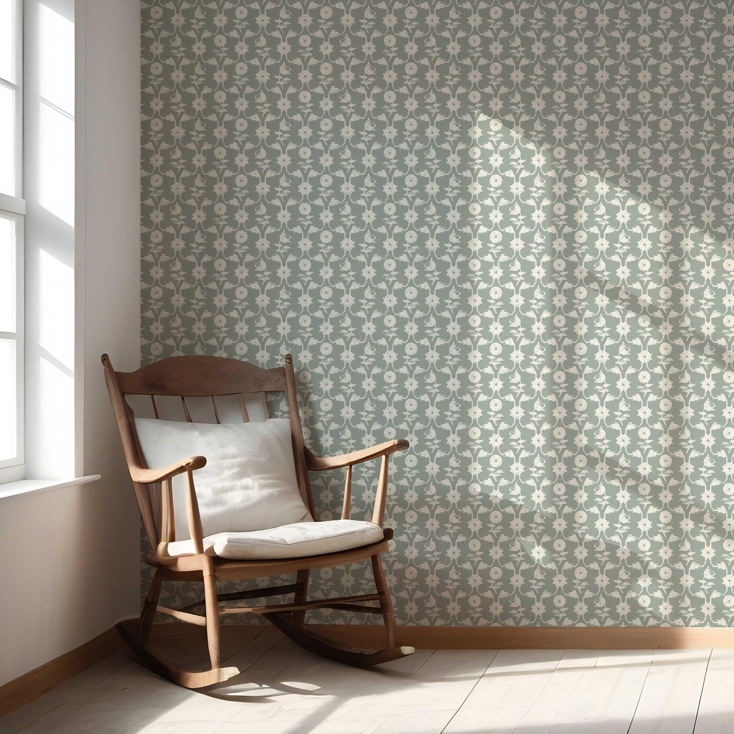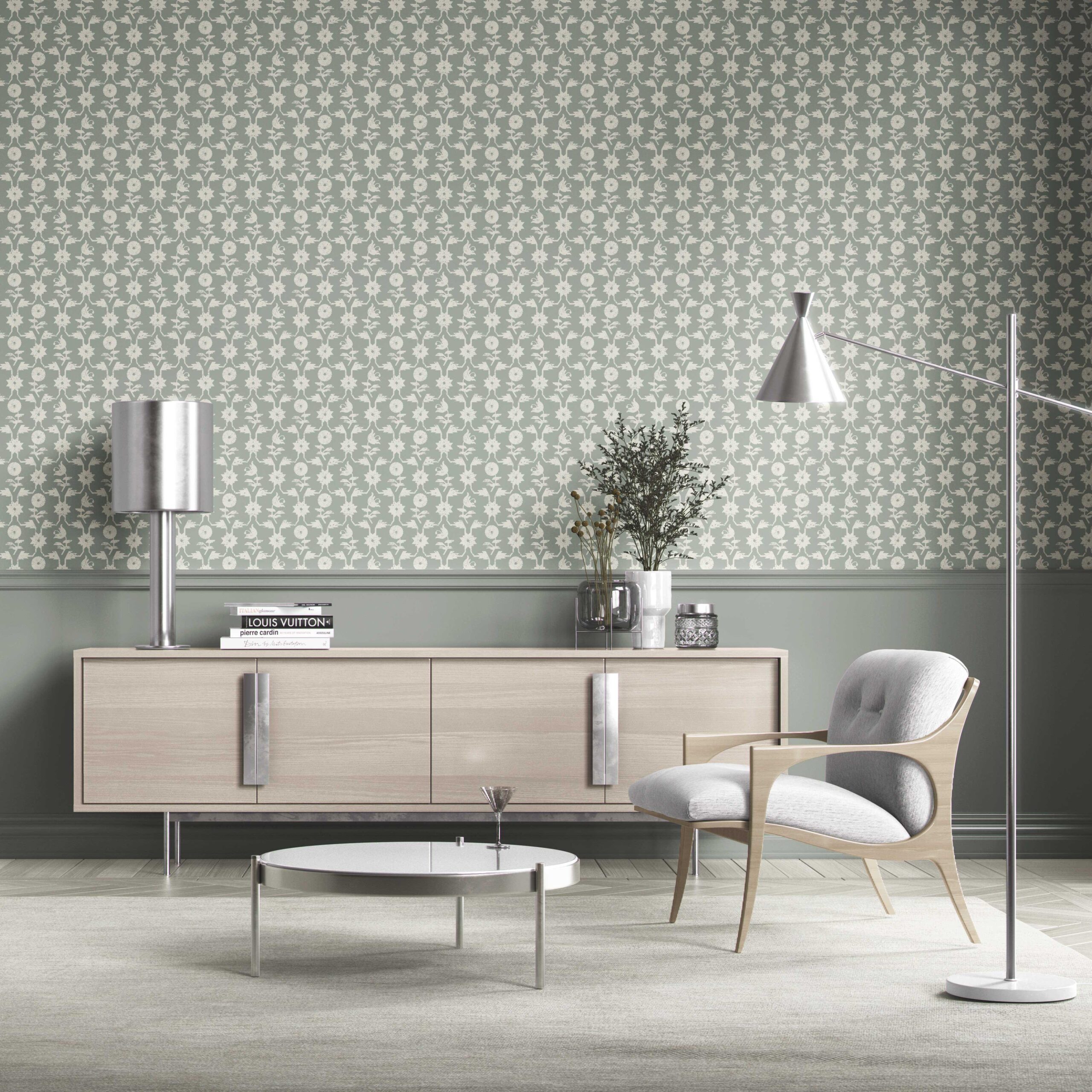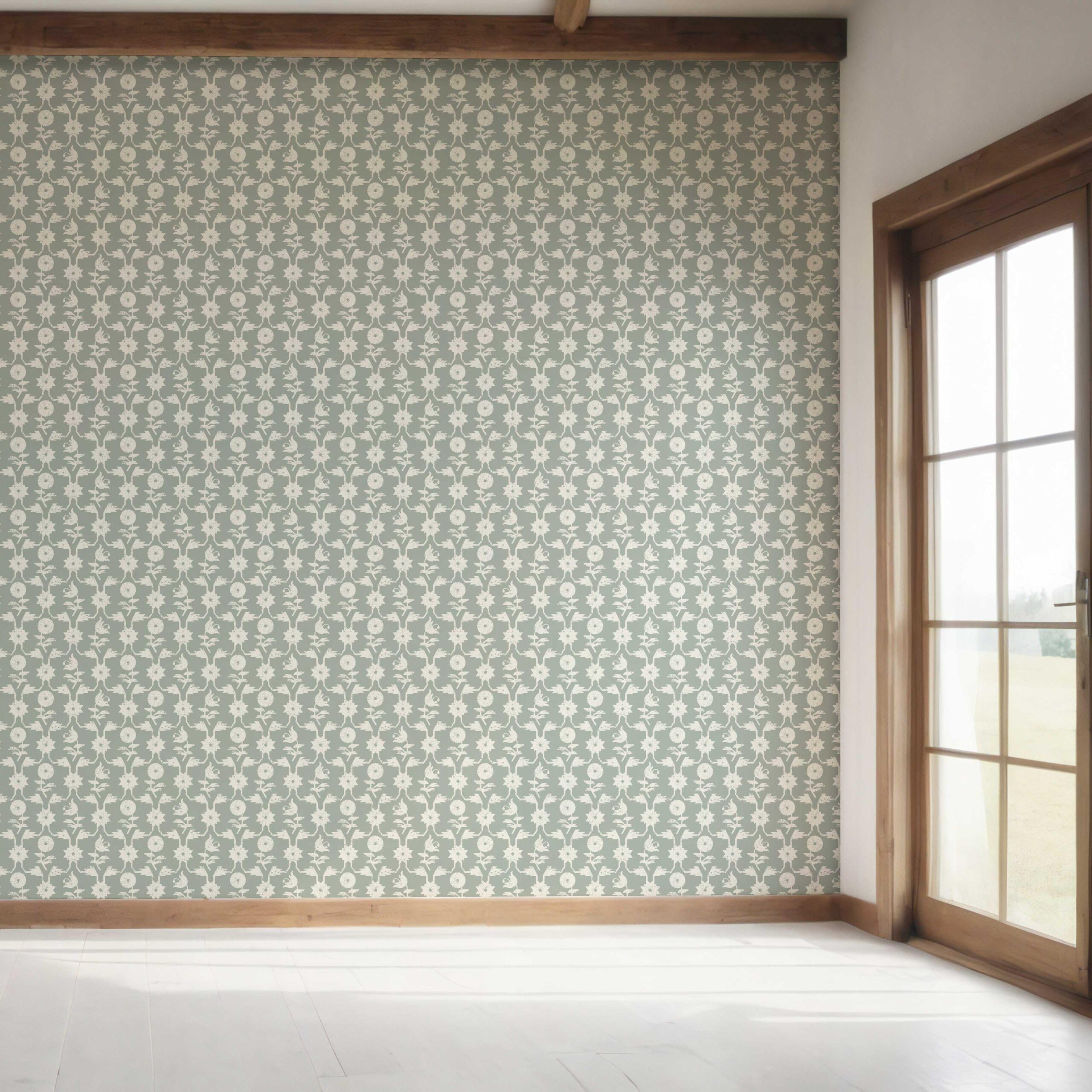 NON-PASTED: ‘Basal’ is an unpasted wallpaper installed by applying adhesive paste (not provided by us, but easy to source) to the wall. While peel-and-stick papers do not leave much room to change the paper’s position once you start applying it, the traditional, non-pasted application is more forgiving, allowing for better positioning when matching patterns.
