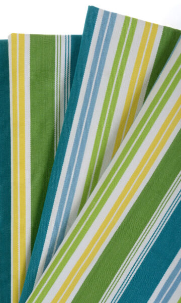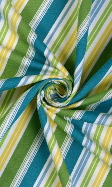 A breath of fresh ocean air for your home, Bayside is our soft white cotton adorned with stripes of blues, green and yellow. Pair it with any of these cool hues and see your windows stand tall and graceful!